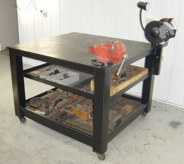 Pics of my metal rack, and metal table (the most used tool in the shop).