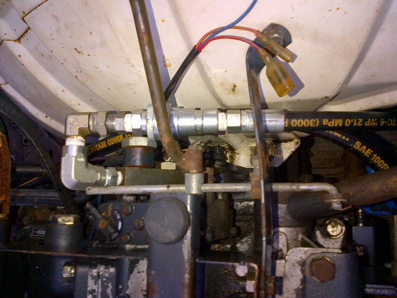 Arrived at Jim's place at 5 tonight. Jim took the time to go thru each piece of the repair in depth with me. Then he gave me some training in coupling and decoupling the backhoe. I am thrilled with the clutch performance now. Jim did a great job and I highly recommend him to anyone. As for my repairs, in addition to the new pressure plate and center bearing, he actually had my friction plate rebuilt locally. Last part to arrive was the pilot bearing, theirs a photo attached which shows what was left of mine. Other photos show the new hydraulic disconnects and the under frame bolts that need to be removed to drop the backhoe. Couldn't be simpler now. Mitch you won't be disappointed. Thanks again to Jim for the recommendation.