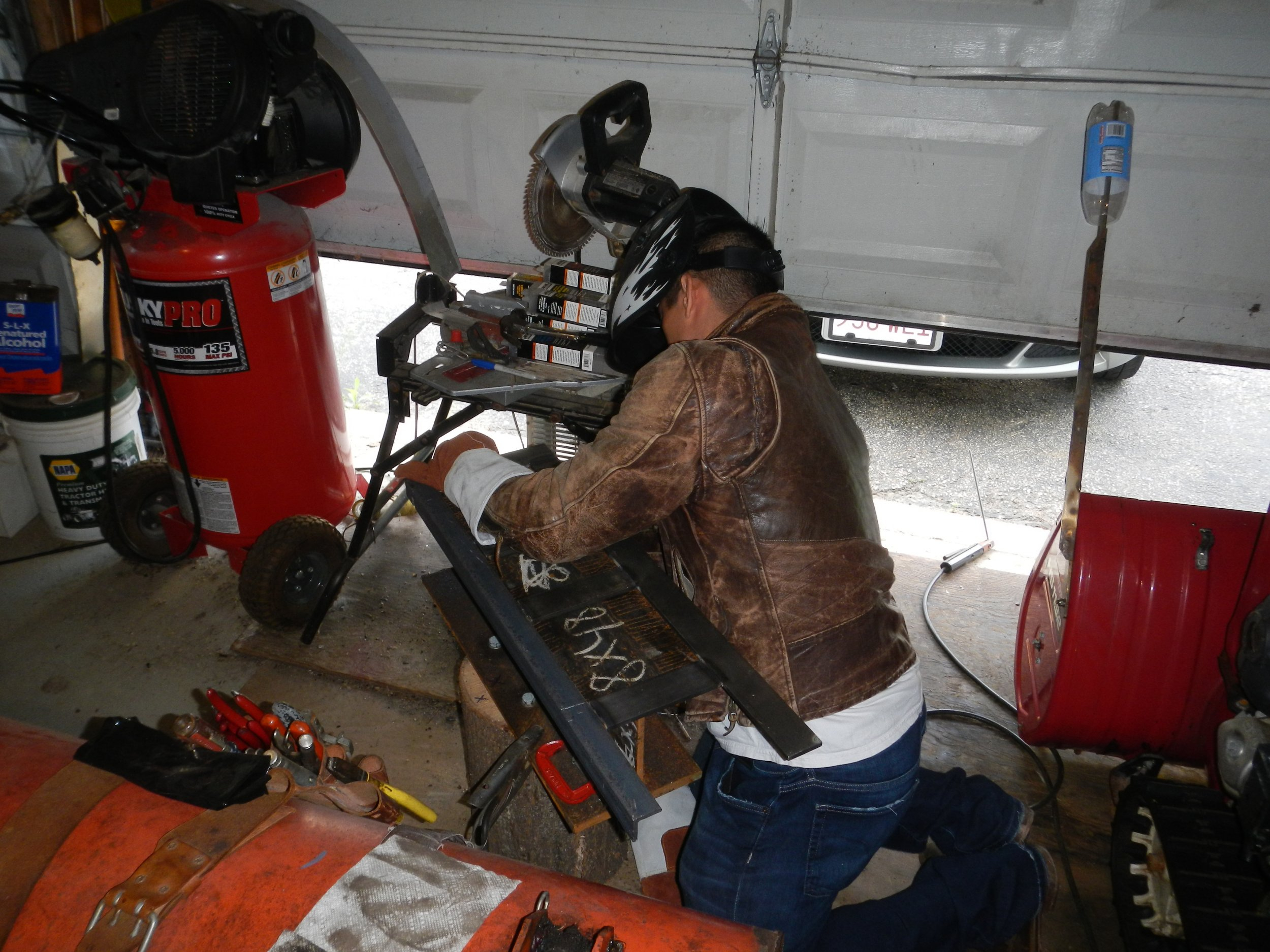 Great minds Kenny . So is mine,,,,,,and welder I mostly use is a Lincoln Pro-Mig 180,,,,,,,plus a blue can with an eagle on it is usually within easy reach.My welding table is an old Craftsman table saw that went bad. I stripped the parts out and put it on casters. You work with what you have.