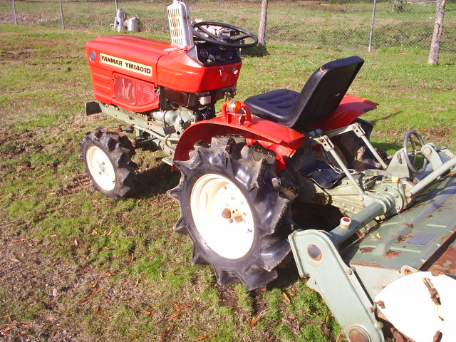 Here's a couple pics I had on hand showing a small Yanmar W/ 2-pt tiller. Maybe you can see it pivots on the main pins on each side of the drive shaft, which is always at the same height above the ground surface. A 3-pt moves the whole tiller in an arc up and down relative to the tractor. I also attach my method of converting a 2-pt to 3-pt tiller on my tractor that I've shown here before. No modifying the tiller, just adding in a triangle adapter. Maybe the only issue I have with this is it puts the tiller back away from the tractor a couple more inches than I like but it does the job. Just takes up a little more room in my over-crowded storage shed.:D