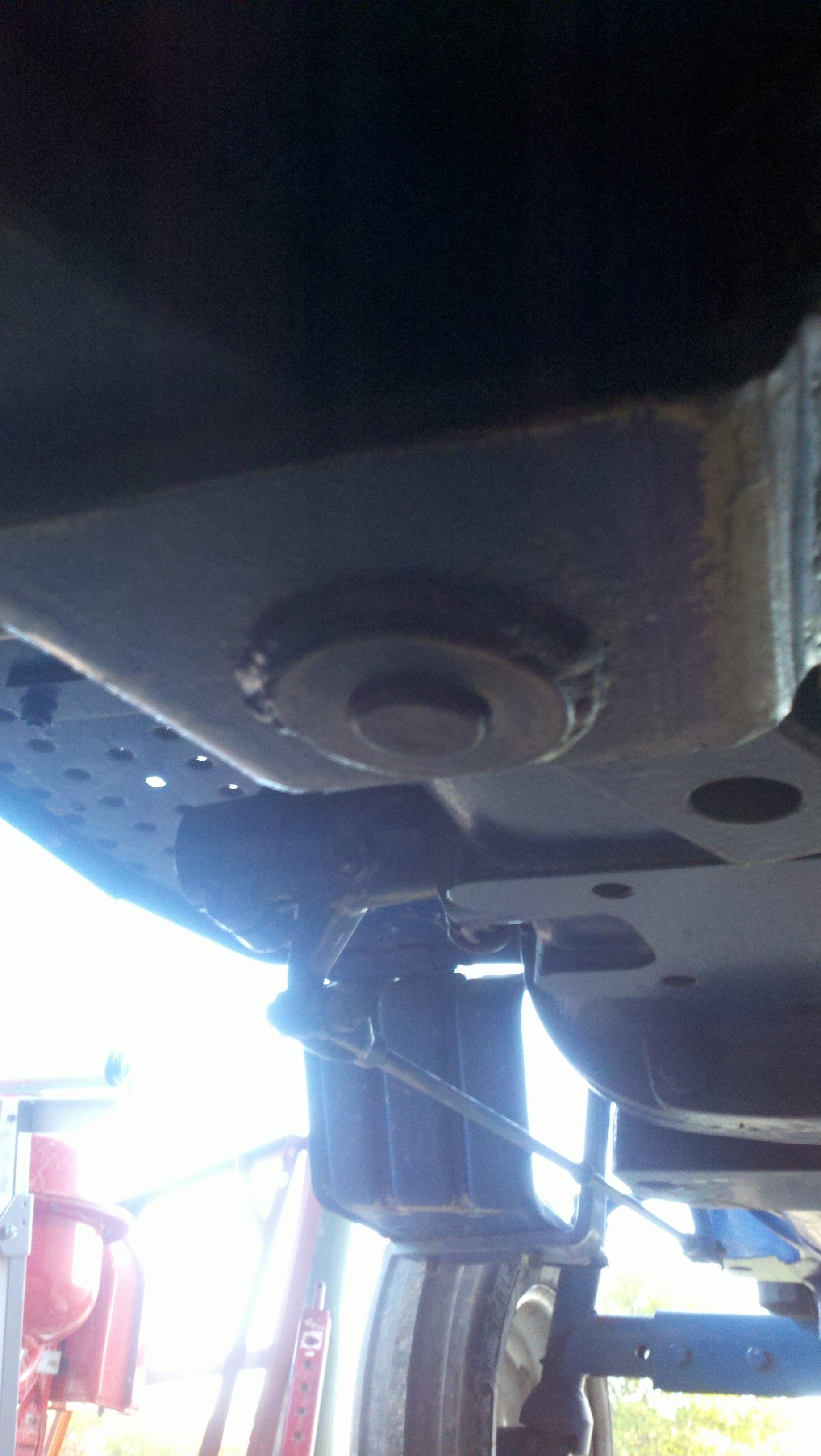 It appears to be fixed to the bottom of the tractor with a screw (about an inch wide) which sticks straight up into the universal housing.