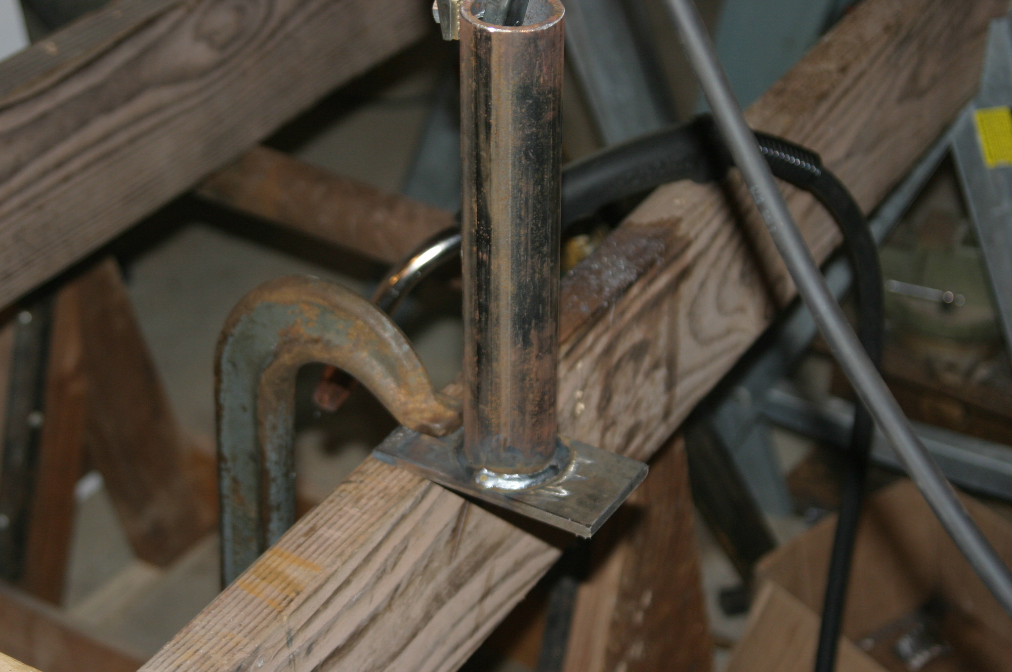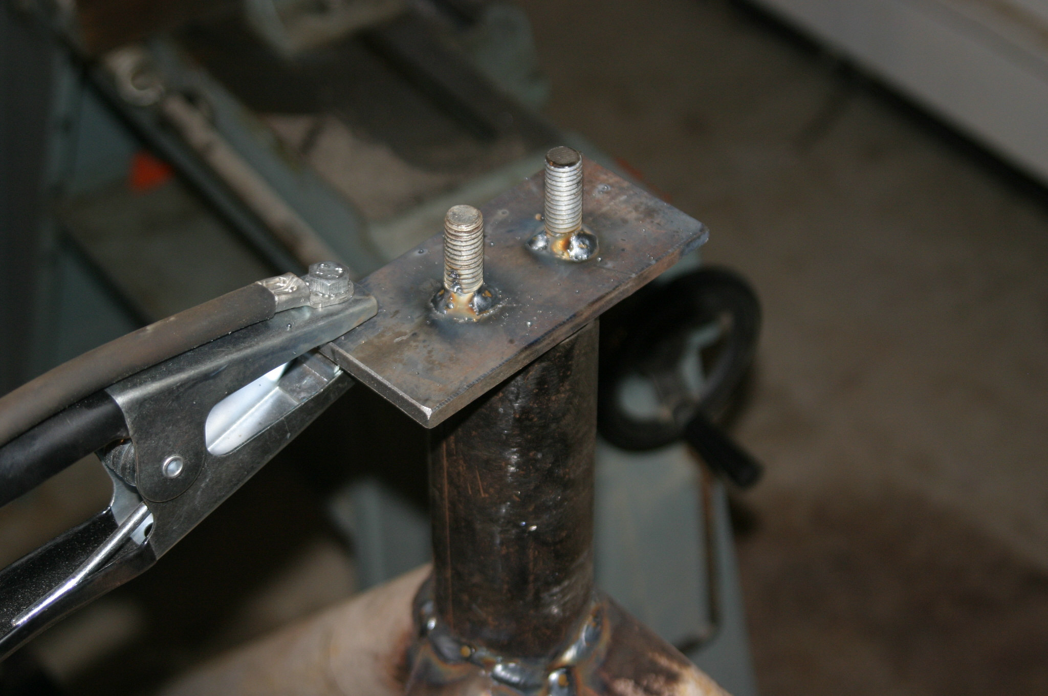 Guess I'll make a base for my vise tomorrow. That'll be handy too, drop it in the same tripod. I'll try to be pro, tho, and weld the bolts on the other side.
