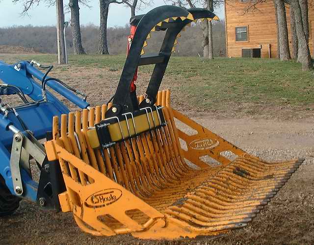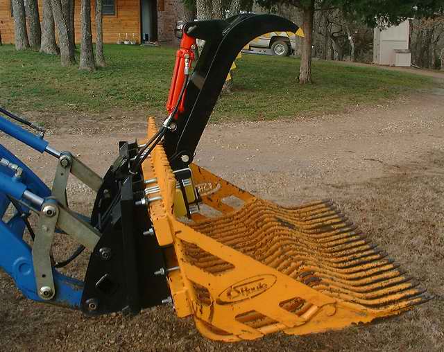 OK folks, I finally got the 3rd function and my grapple installed. Reinforced bucket, necked it down from 3/8" to 1/4" hoses to the grapple cylinder like was suggested here on my last post.