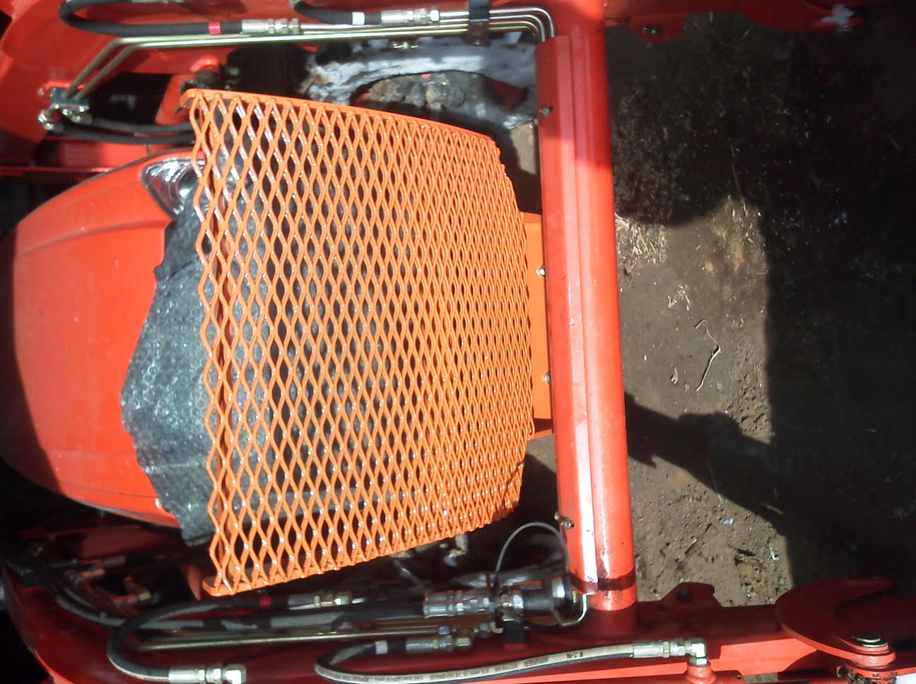 My NX6010 was taking a beating when I was using the root grappler. The hood and front grill are pretty smashed in. I got two pieces of expanded metal and made this. Wish I would have done this when the machine was new. I highly recommend doing this is using a root grappler
