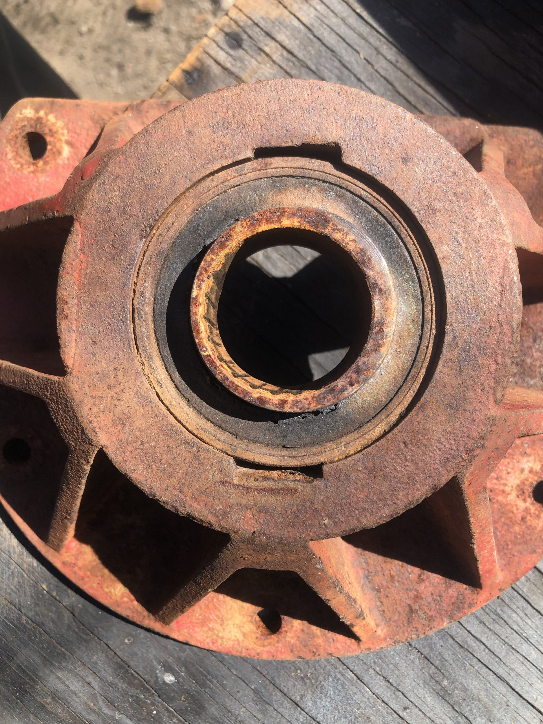 This one is kicking my butt. It looks all beat up now. Using a 8# sledge and a chicken pin doesn’t seem to be moving it so it’s soaking, probably end up finding a torch to borrow.