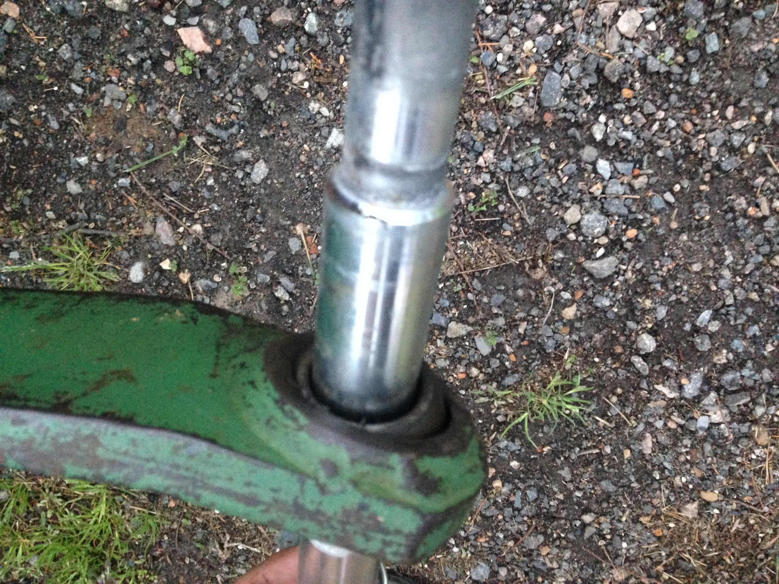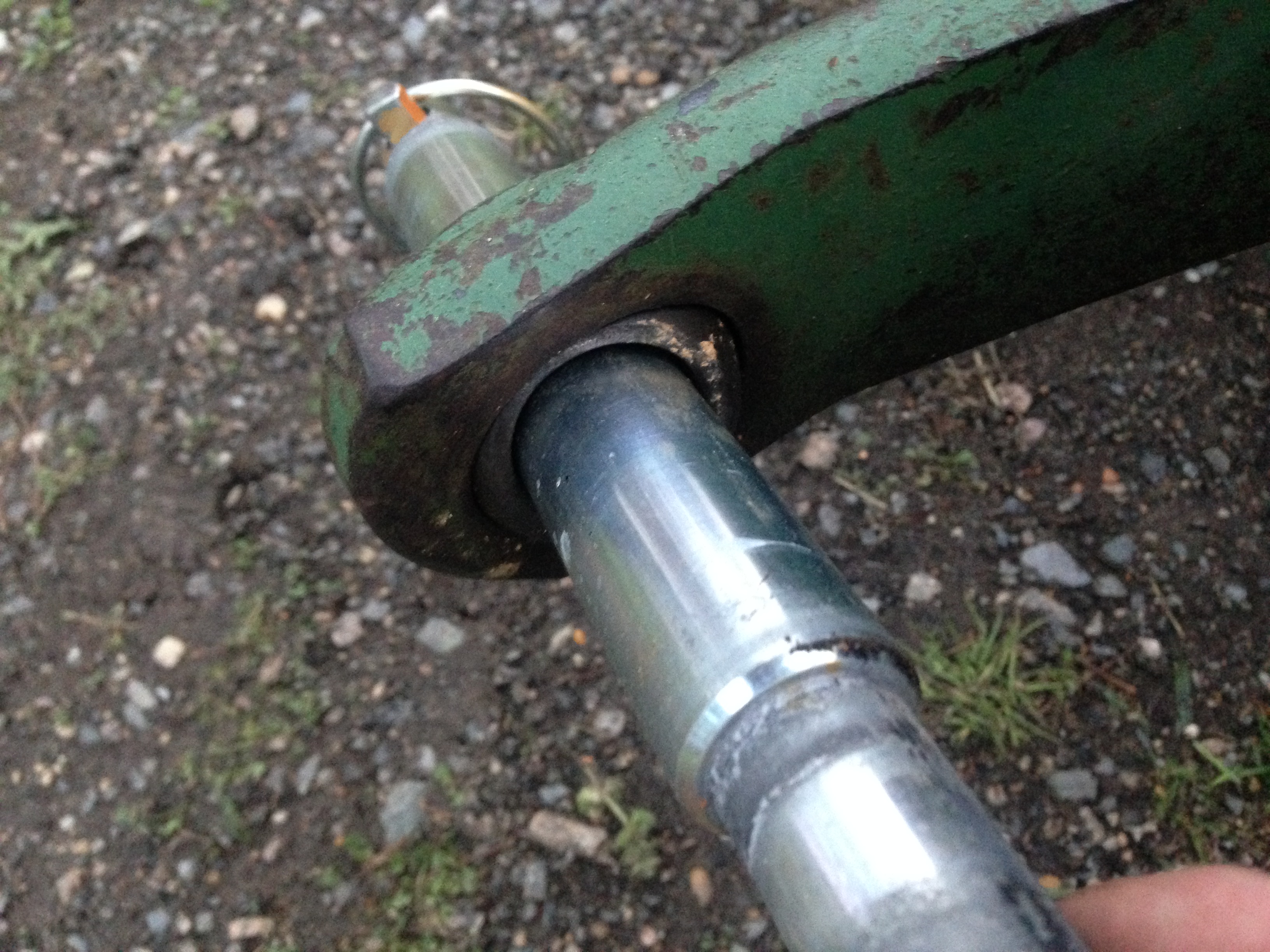 2. The lower draft links are CAT II and the balls are worn slap out. I bought some bushings to bring it down to CAT I and they are loose going into the balls. Not sure what to do with this. Might just buy two new draft links. I did put some weight back there to see how it lifts. Picked the six foot tiller up like it wasn't back there.
