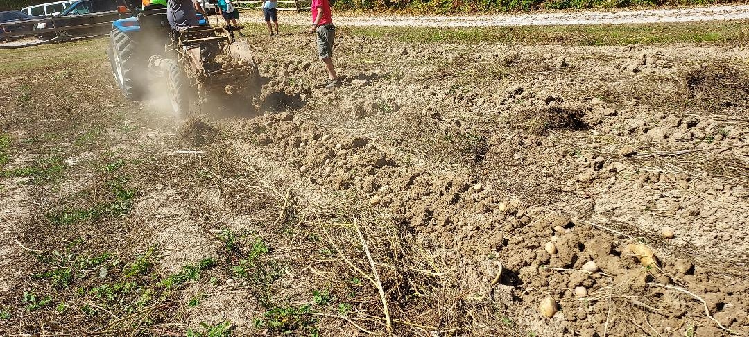 But we plant 5' O.C. I suppose in all there is about 3/4 of an acre planted in potatoes. Rule of thumb here is for every 100 lbs. planted you get 1,000 lbs. in return. I have no idea the amount you want to harvest, but guessing with that planter you should be able to plant 500 lbs. and in a good year, harvest 5,000 lbs. Just some food for thought on considering 5' rows. Here again we use an old IH pull type digger and is pulled with a small New Holland tractor with hydro so it can move slow.