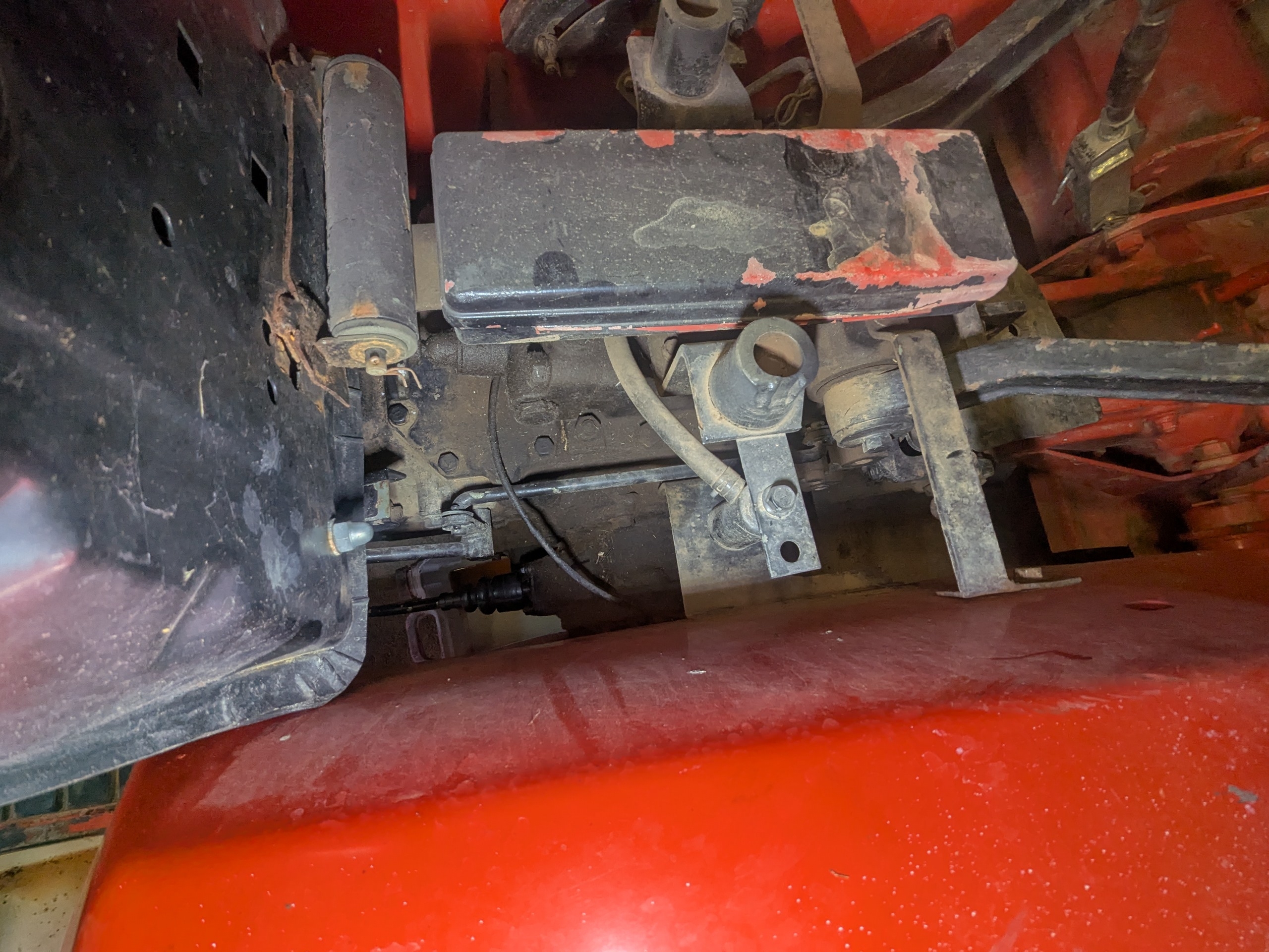 I do not have access to a 1602 parts manual but here is what I think. I circled what I believe might be the flange that covers your internal suction screen. That screen would need to be cleaned. If no knowledge of last screw on filter change then it likely should be changed. No idea what condition your used fluid was in so I can't really advise a flushing. If everything was pretty clean looking I probably wouldn't do any flushing. A universal transmission/hydraulic fluid is recommended. No idea what you have access to in Spain, maybe Maverick will help you with that.Okay, so what procedure should I follow to refill the oil?