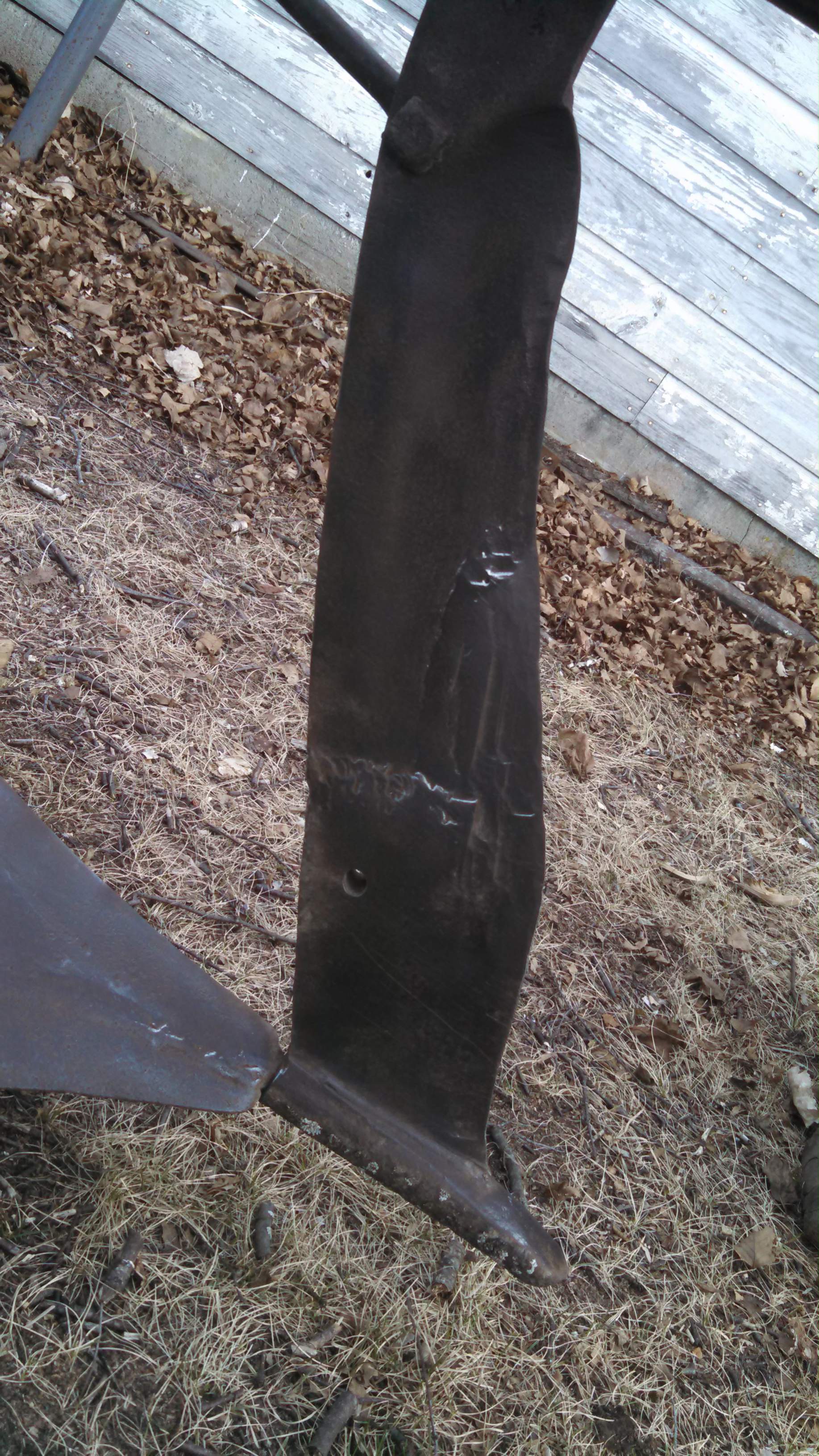The coulter also appears to have been modified, judging by the welds. The mole subsoiler type tip connects to the share