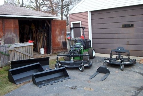 So I went the "one machine to do it all" route about 2001 when I bought our PowerTrac PT425. In a nutshell, it's a little articulated loader where all of the attachments mount to a quick attach on the end of the FEL.