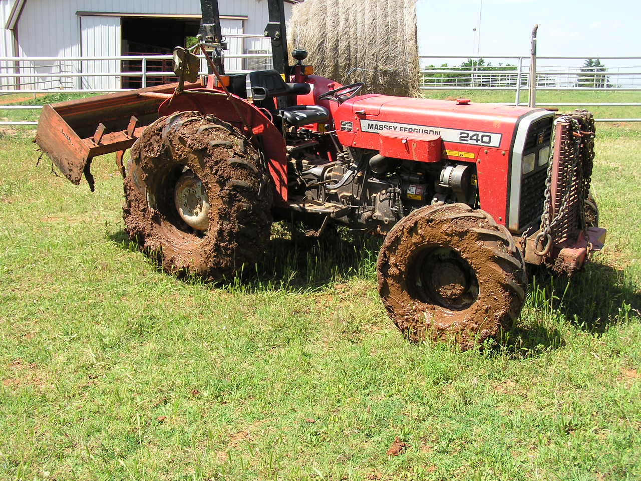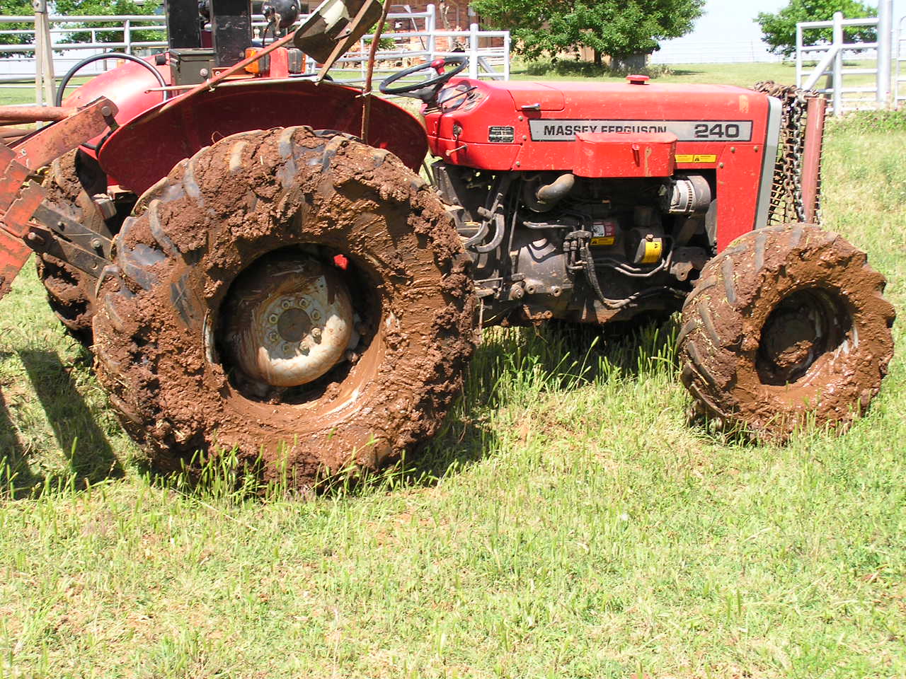 Hello, chris2, that tractor is not very stuck. Put the bucket on the ground , flat, and lift the front wheels out of the mud. Then lift the rear out with the backhoe. NB gently does it.