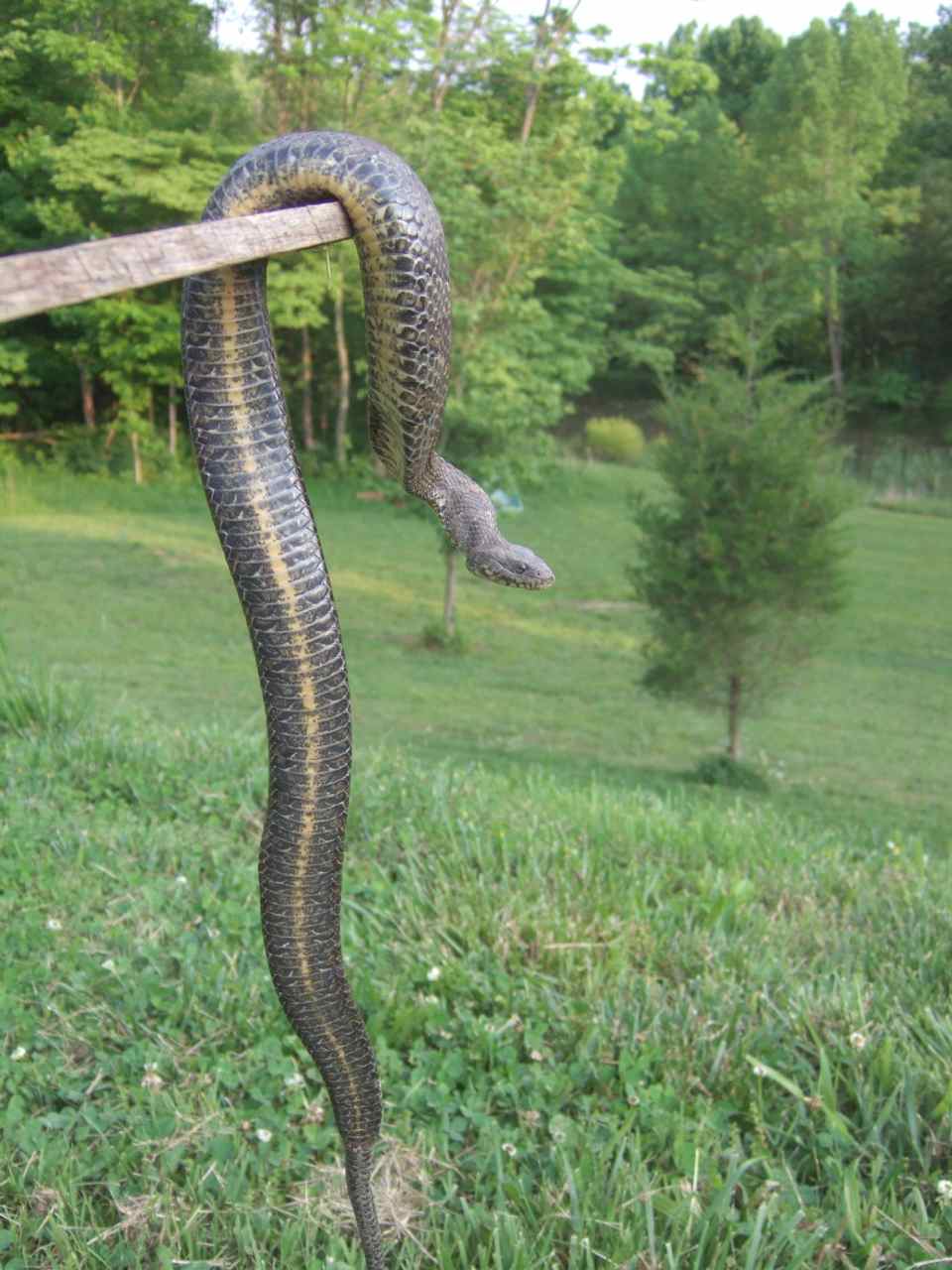 He crawled out of the burn pile after I lit it up. I smacked him a couple of times with the leaf rake. He's a bit skinny, hasn't fatten up since winter hibernation.