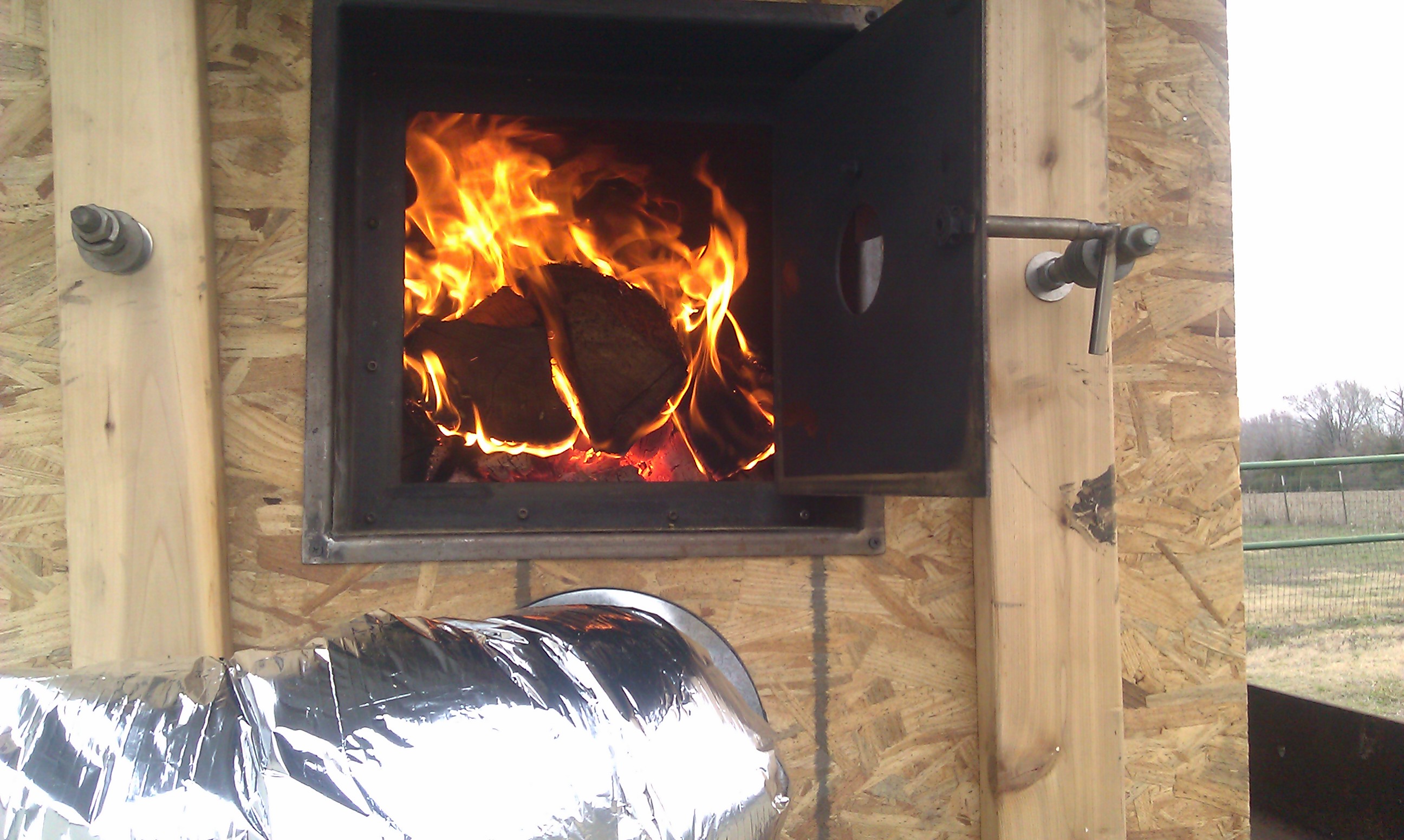 you can see the reg stove pipe used for the chimney. It does work but draft has to be kept open more than I would like to keep pipe at a good tempature.