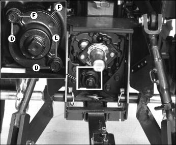 5. After oil is drained, remove two cap screws (D), two lock washers (E) and suction screen cover (F).