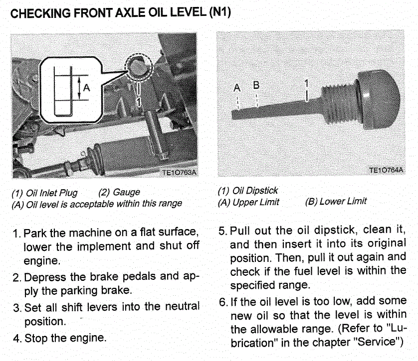 My front axle has a dipstick just like the hydro dipstick.![]()