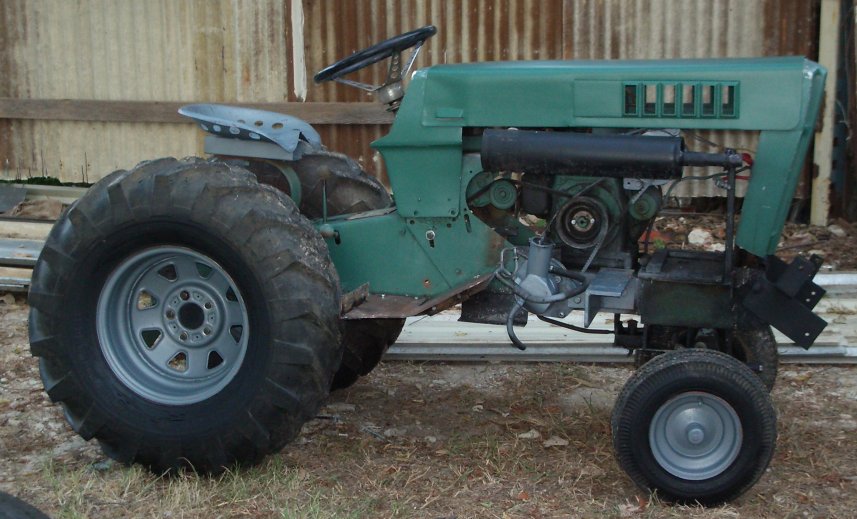 After swapping the 31x15.5x15 tires from Suburban to my Powermax I wanted a new setup for the Burb. After mounting these other 15" wheels with lugs the tractor set with to much foward rack so I remounted front axle to level things out and extended wheelbase at the same time. I'm now happy with the stance and it handles well. Just gotta build the fenders, 3PH and repaint.