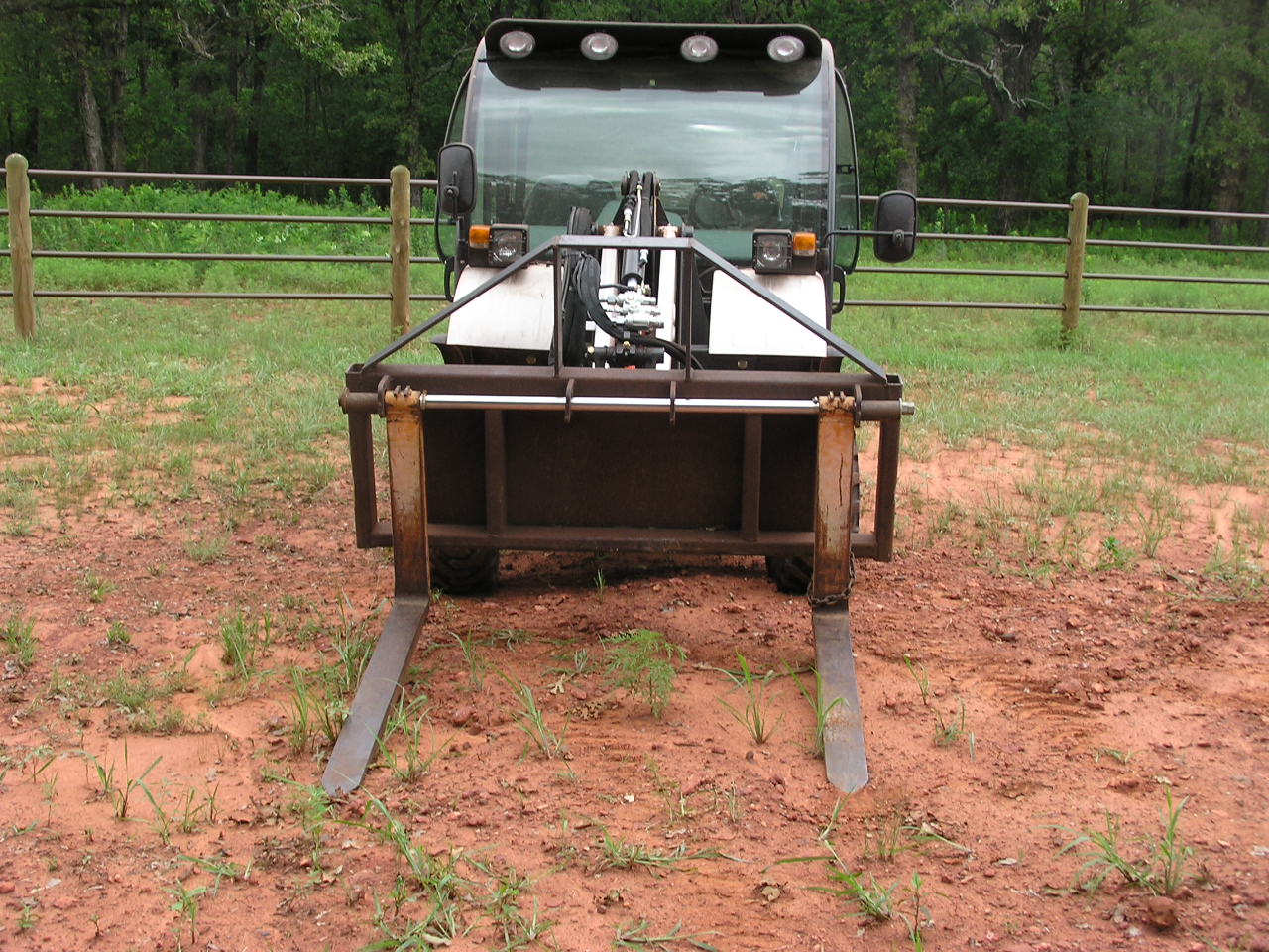 So, here's what happened to me when I recently bought forks. I got a great price quote for a set of construction attachments 48" regular duty 3000lb capacity forks from a nearby dealer. Called again to confirm the price, drove to get them and the was told the quote was a miscommunication, but that they would honor it since I had made the drive. Cut the deal, then went to load them, and they weren't there. So... They have me the carriage from a heavy lift set (which I guess is the same) and a set of used 42" forks to take home. The dealer is going to deliver the 48" set when they come in. Originally I wanted 42", which is what I have, so now I have to figure out if I should get the 48s that I paid for, or stick with the 42s. I guess I'll play with these for a while and see if the dealer wants to make me a good deal on these used ones. I like that the 42s don't stick out through the pallet, but I can't see the tips from my seat.