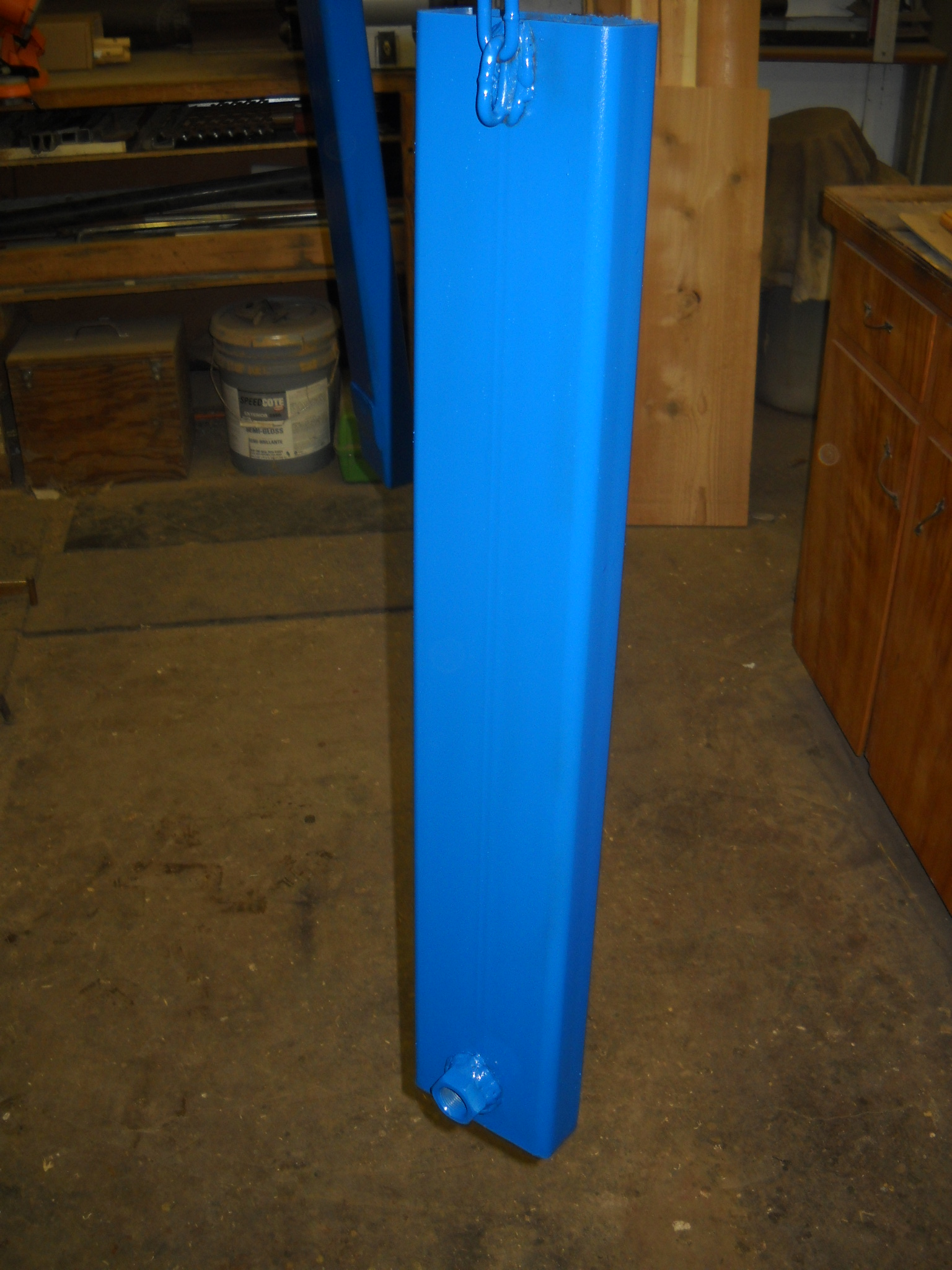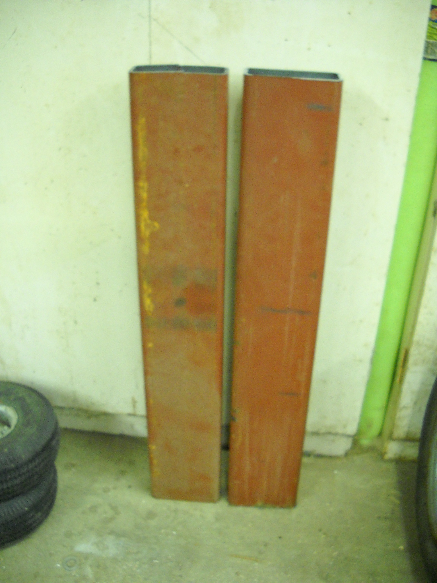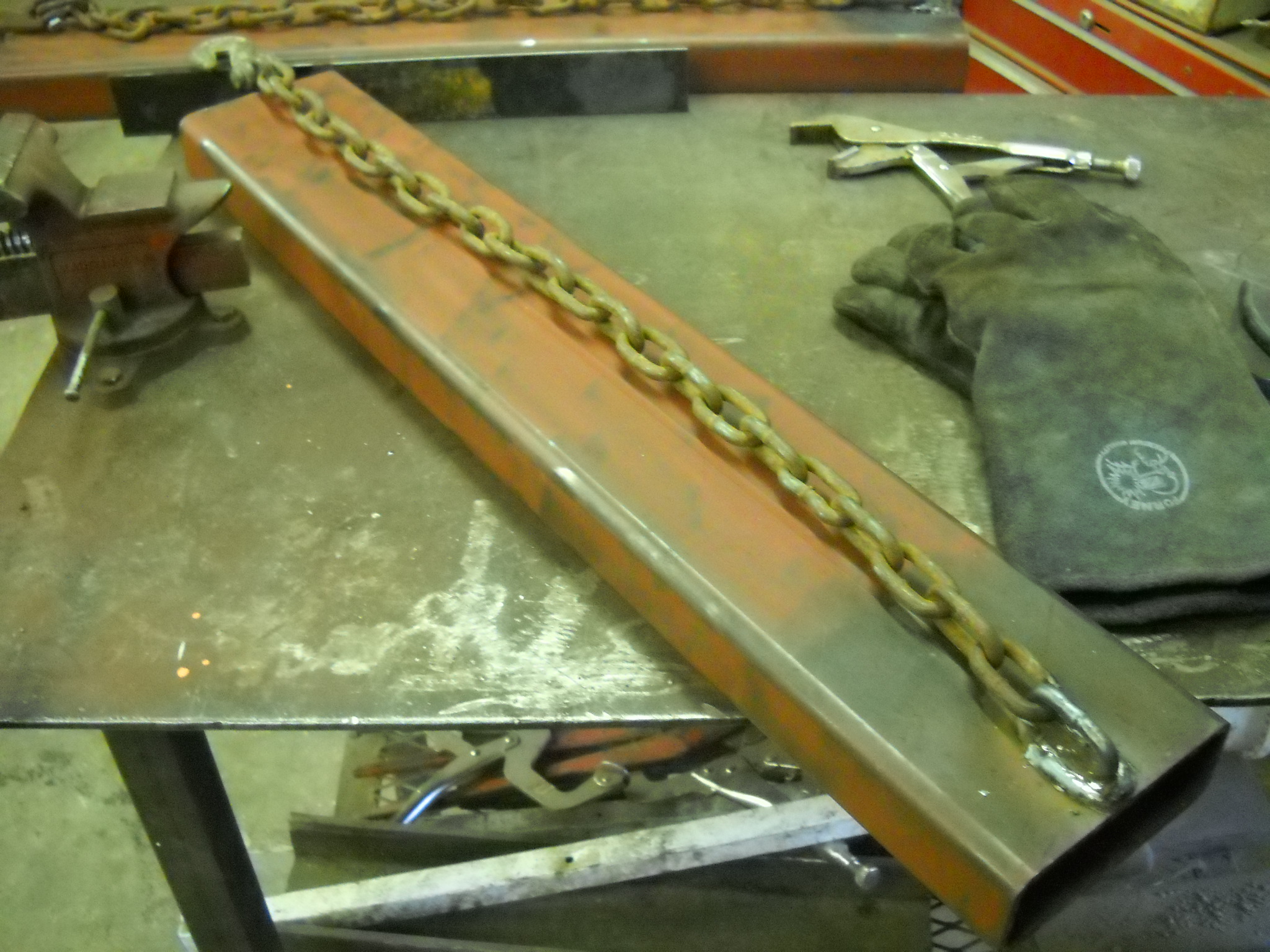 I have been wanting to weld lately and came up with a little project for moving uhaul trailers with the CT322 and all the trailers at home. I saw one one one of the forklifts at united rentals so i figured why not make one? I started with one long piece of 3"x5" steel square stock and cut them at 2 1/2'. I wire brushed the ends and got two chains which are also 2 1/2' in length and welded them to the square stock ends. I have had very little welding time lately so my welds aren't to pretty.