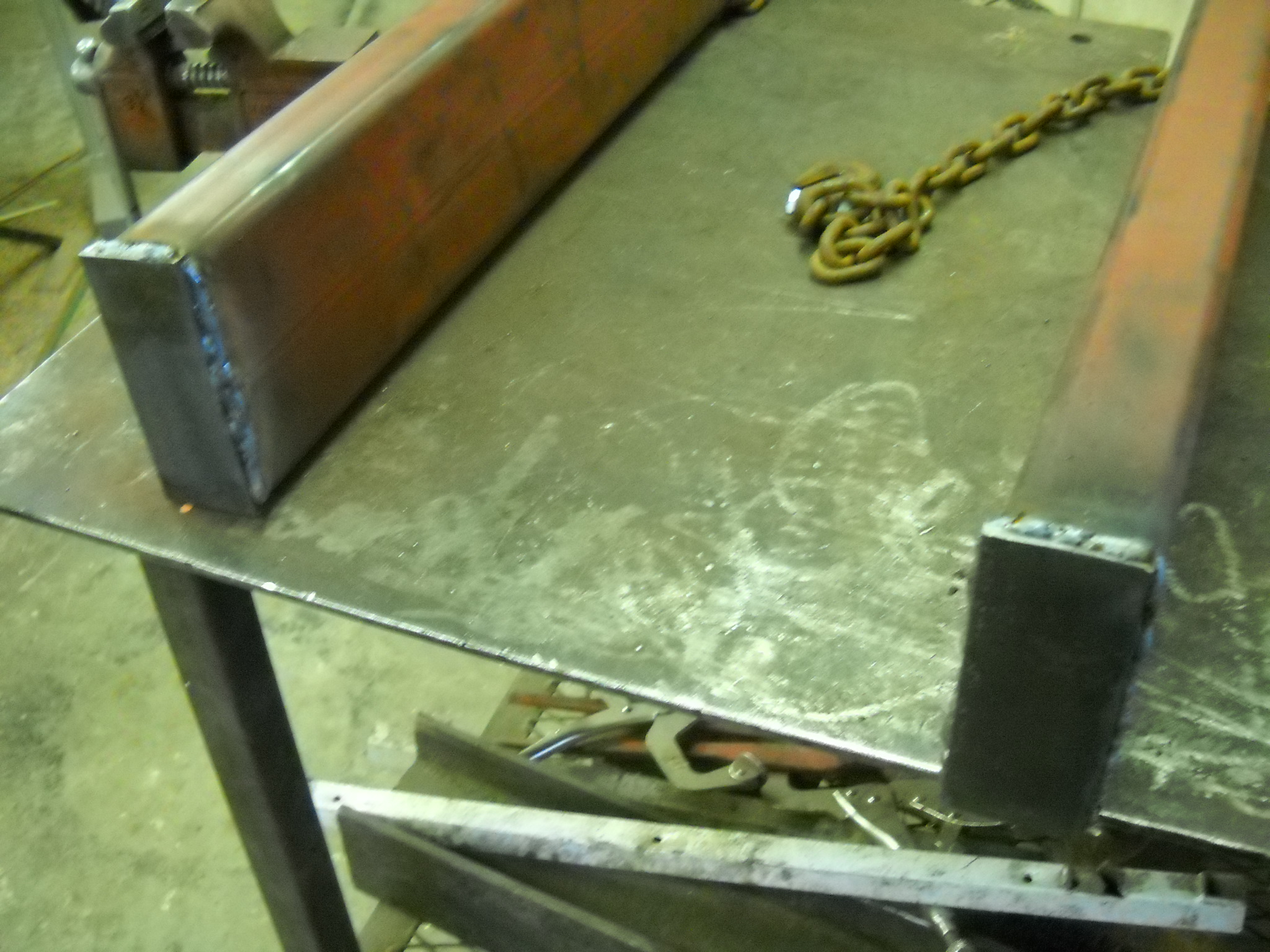 Next step was to weld caps to the ends of my trailer mover to prevent dirt from getting packed inside it and off of the fork. After welding on the 5"x3"x1/4" piece to the ends I grinded off the edges and smoothed out the corners a bit. Made it sure look nice. :laughing: Once I had got this done I decided that I might as well put skid plates on the bottom to help keep the paint on these since i know they will be skidded across pavement when attaching to trailers.