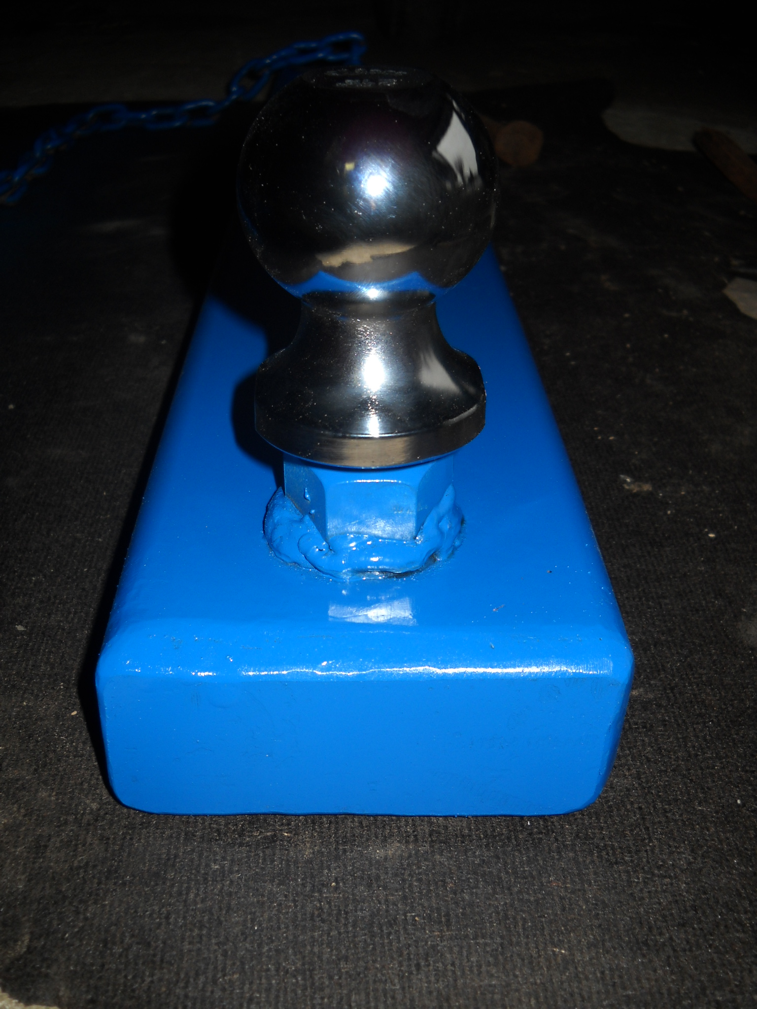 Well Today I got the chain painted up. I also screwed in the trailer balls and for the one I am keeping put a protective sleeve on it to protect the thread and keep it up a little higher since It will be used in many ways, I know for a fact not only trailers and I will probably have to swap different size trailer balls for different trailers since we have some smaller trailers as well as larger ones. For the one i am selling, i screwed it all the way in. Runner, one other idea for it i almost did was weld a receiver to the trailer mover so i could swap the trailer balls a little easier but then I would have had to have the ball on the hitch so you could see it when hooking up to a trailer. Thats why I went this route.:thumbsup: