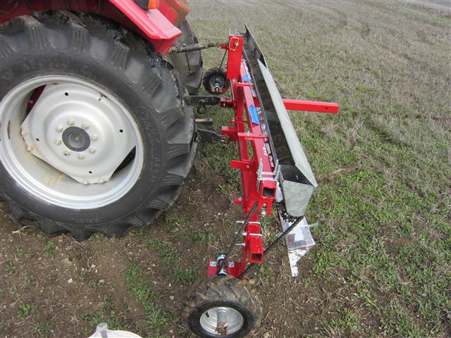 Several years ago I build a drop seeder out of a pair of 5-ft wide grass boxes that I salvaged from an old Minneapolis Moline P3-6 grain drill.