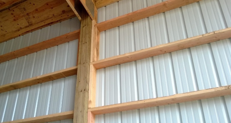 My question is, how do you add enough bracing to make the structure sound again? Obviously not looking for an engineering report but some actual builds of things that work. I had though about using "commercial" or "ladder" style purlins in between my posts with the metal screwed through the flats into them. Then the metal acts much more like typical sheathing. Added side benefit of easy insulation and interior wall finishing.