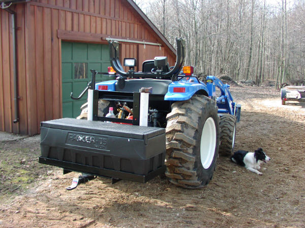 I had the same problem---no place to haul saw, wedges, fuel, etc... I use a small trailer, and it's hard to keep everything from falling off of a full load!! Solution: A very light weight carry box that goes on 3 pt. I used galv. pipe and 1/8 x 1 1/2 x 1 1/2 angle to make a frame to hook up to 3 pt. After that, I welded two pcs. on that looked like forks sticking out back (about 16"). To these, I bolted a 3/8" pc. of plywood. Now we have a small platform att'd to the 3 pt. The secret: Go to Walmart and buy a plastic storage container and screw it to the plywood. Get it deep enough and you won't have to worry about anything bouncing out.