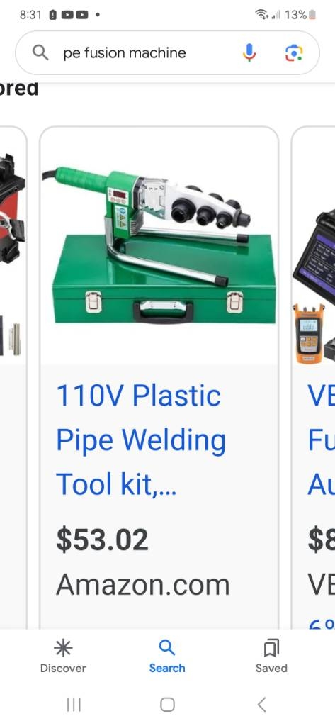 Looks like $53 for no-name micro fuser. My thought on a set up like this, is temp control, and in the videos I've seen, they basically 'melt' a bell and spigot, and not a butt weld like a proper Fusion machine. Also, with pipe Fusion, clean, perfect butt are critical; as well as temp and then holding for right amount of time with right amount of pressure. View attachment 833402