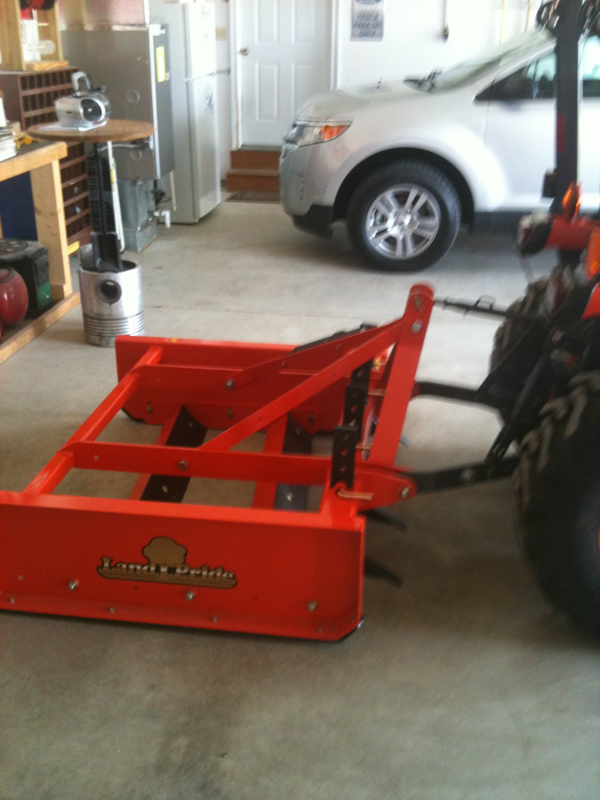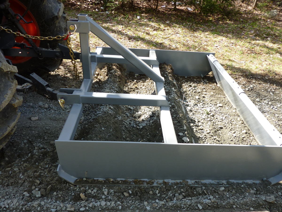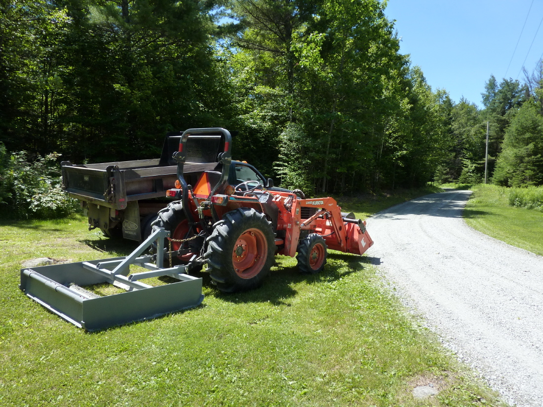 Had 42 tons of gravel delivered about three weeks ago and the driver could not dump spread to save his @ss. I ended up with about 7 piles of stone, a shovel and some blisters. Called a buddy and he semi- graded it with a Kubota FEL. I used the grading scraper and cut the crown out of it and had it all level within an hour tonight.