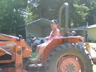 Heres one of my mom, who at 80 stiill mows her field. She has a fit if she doesn't get gas for the tractor. She can't drive now and this is what keeps her going. I've sent this one into the John Deere PR dept.