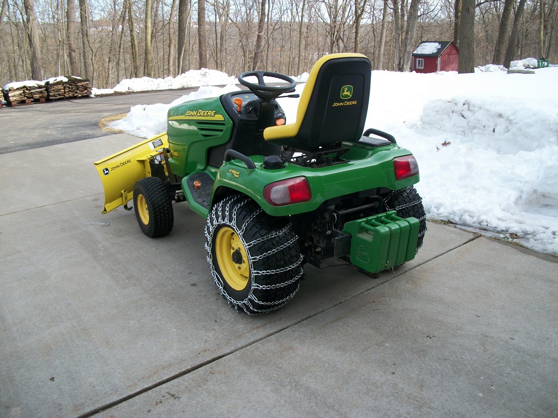 My first snow removal tractor was a John Deere 400 with a homemade blade. Chains and weights were a necessity. Next was a 955 with a 420 loader. I made up a set of chains but never used them. I gave them to the person who bought my tractor. My 4410 has been stuck a few times but never to the extent that I couldn't push myself out of the snow. I've mostly had more than enough traction for pushing snow without chains and weights.
