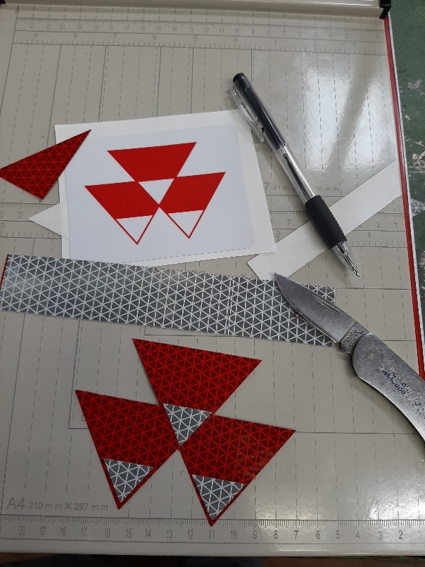 Thanks! The emblem is cut from some extra reflective tape I had, and mimics the Massey. Needs a backing plate, maybe later. Brush guard battle tested in the woods and worked great.