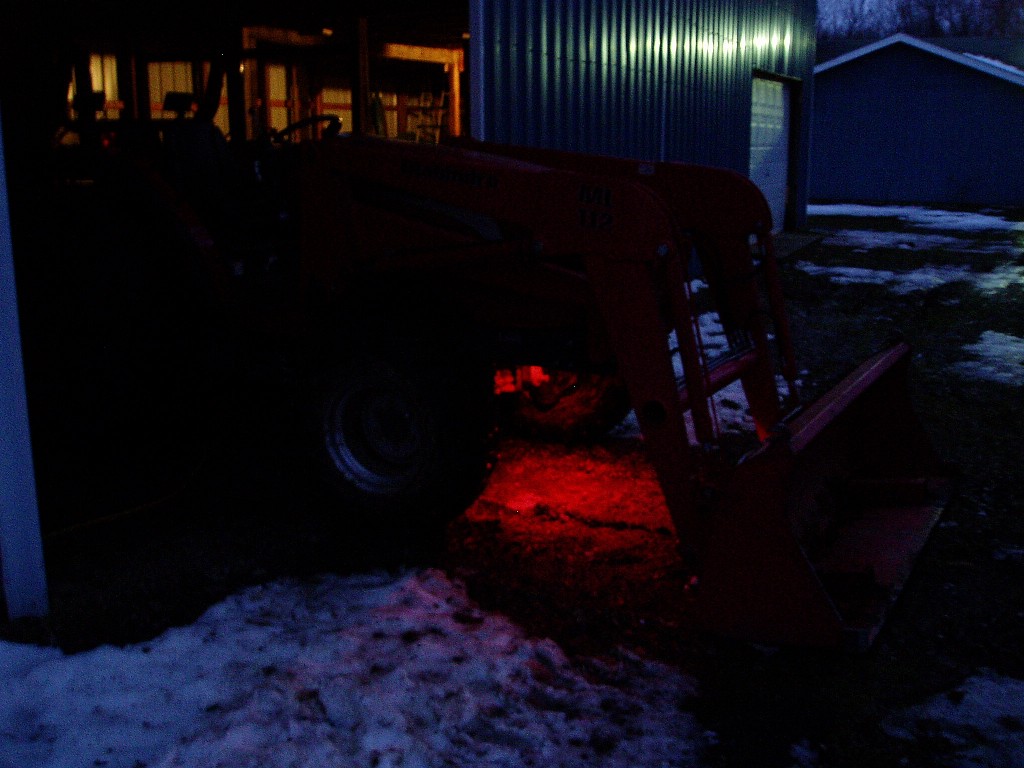 Theres a 19 year old kid lives near me, he contracts himself out every year to the local farmers with his tractor. I plan to take a photograph of his rig during the ploughing this coming season. This guy must have at least 30-40 working lights on his tractor, all around the cab, on the mirrors, front n rear fenders, and even underneath. Now, this is like a spaceship has landed when you see this rig tilling into the wee hours of spring/summer, a ball of white light with a tractor in the middle of it. Your photograph kind of reminded me of his under tractor lighting mboulais, handy I guess if you want to see underneath your tractor but prone to damage big time....