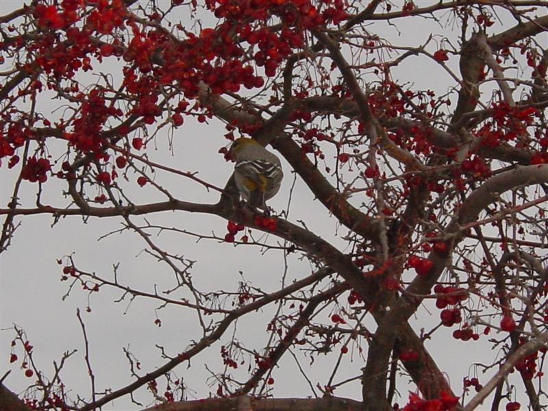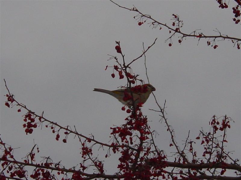 Although the weatherforecasters are predicting a warmer January and February Mother Nature is sending different signals. I have been bird watching most of my life and recently I have seen these birds that are rather rare in these parts- Pine Grossbeaks. They generally reside in the upper ranges of Canada. Now I am watching for Snow Buntings and Snowy Owls (I have rarely seen them here.).