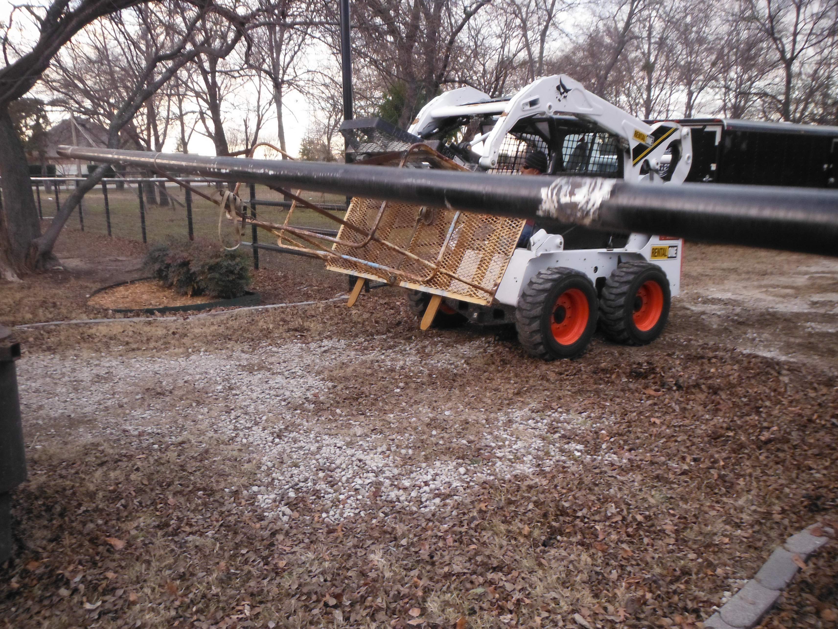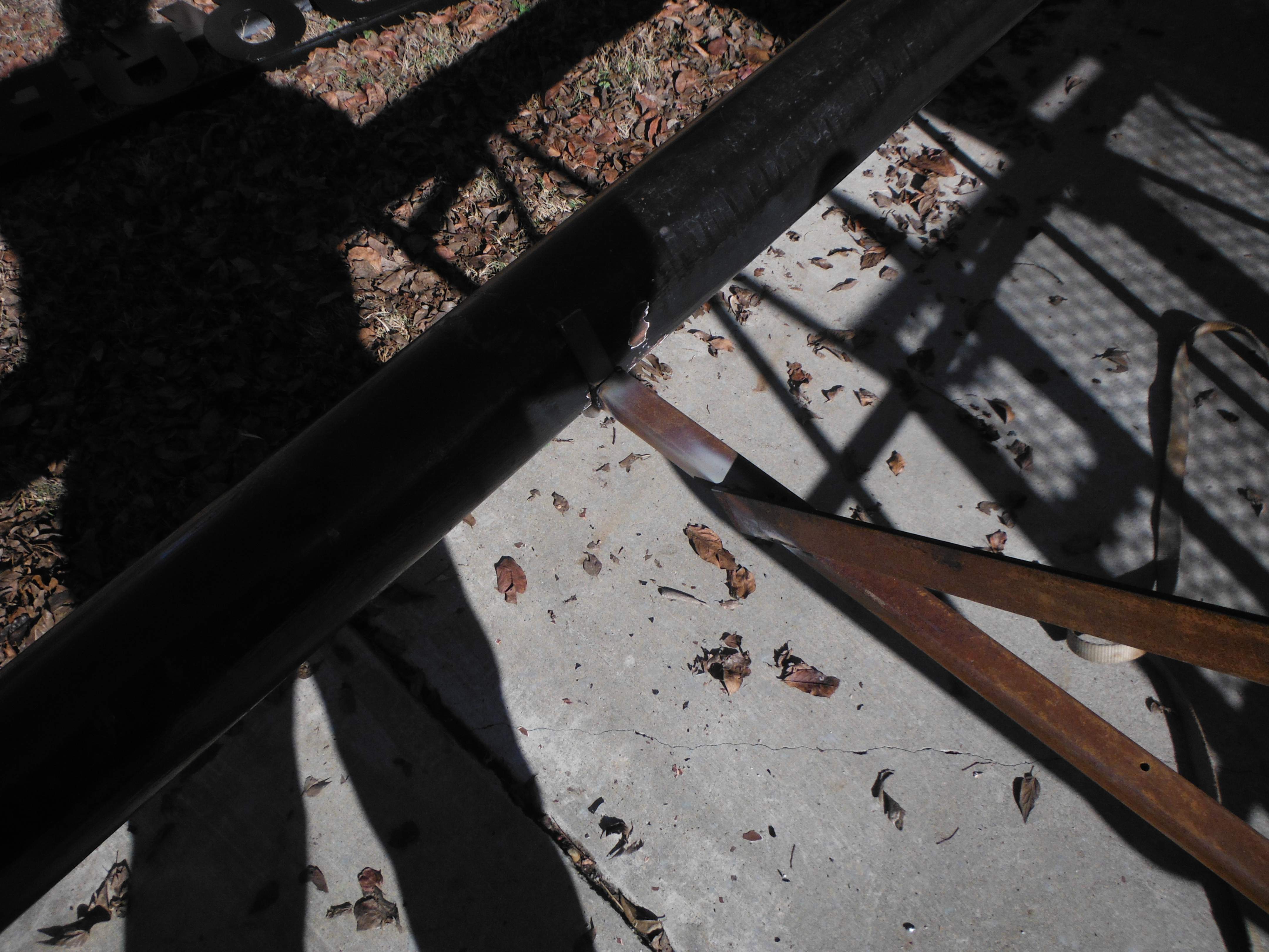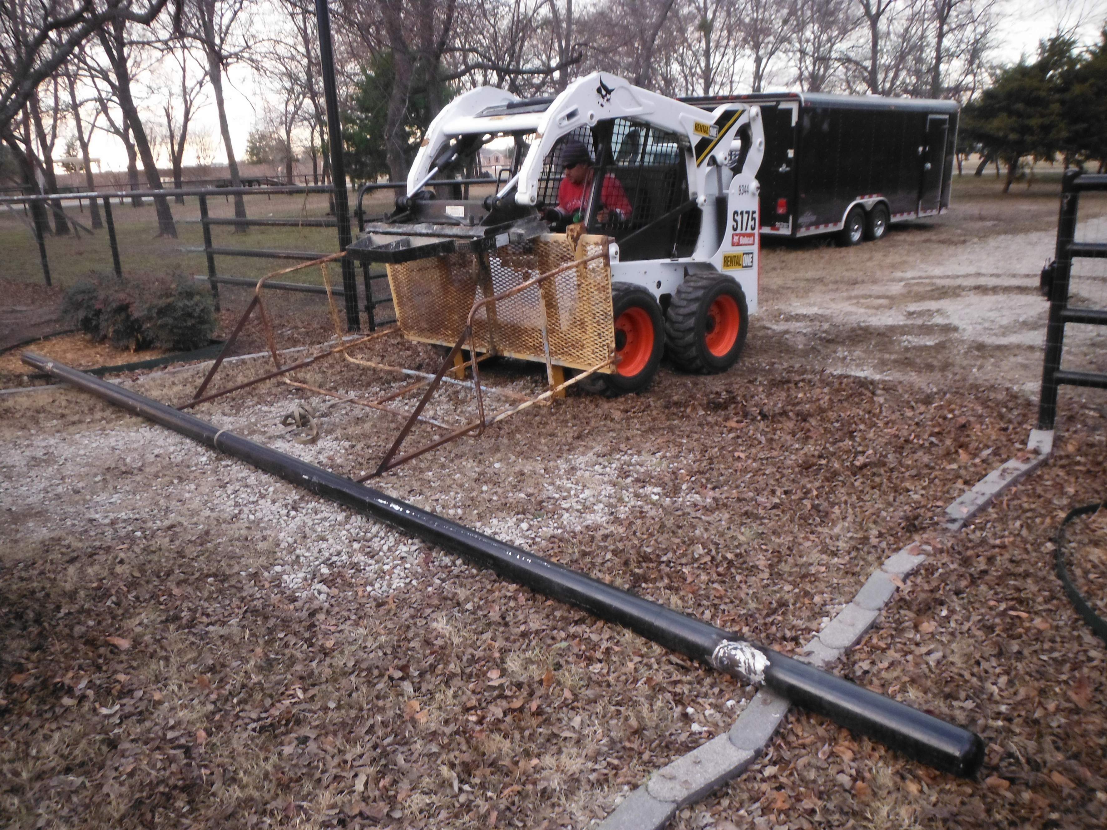 I picked up the new pipe, 4 5/8" for two of the gates and 2 7/8" for the last one. The idea is to cut the overhead at the top of the existing posts. Then trim the post square and add the necessary height already notched for the pipe, replace the overhead. Nothing but a thing. This is how we did it.