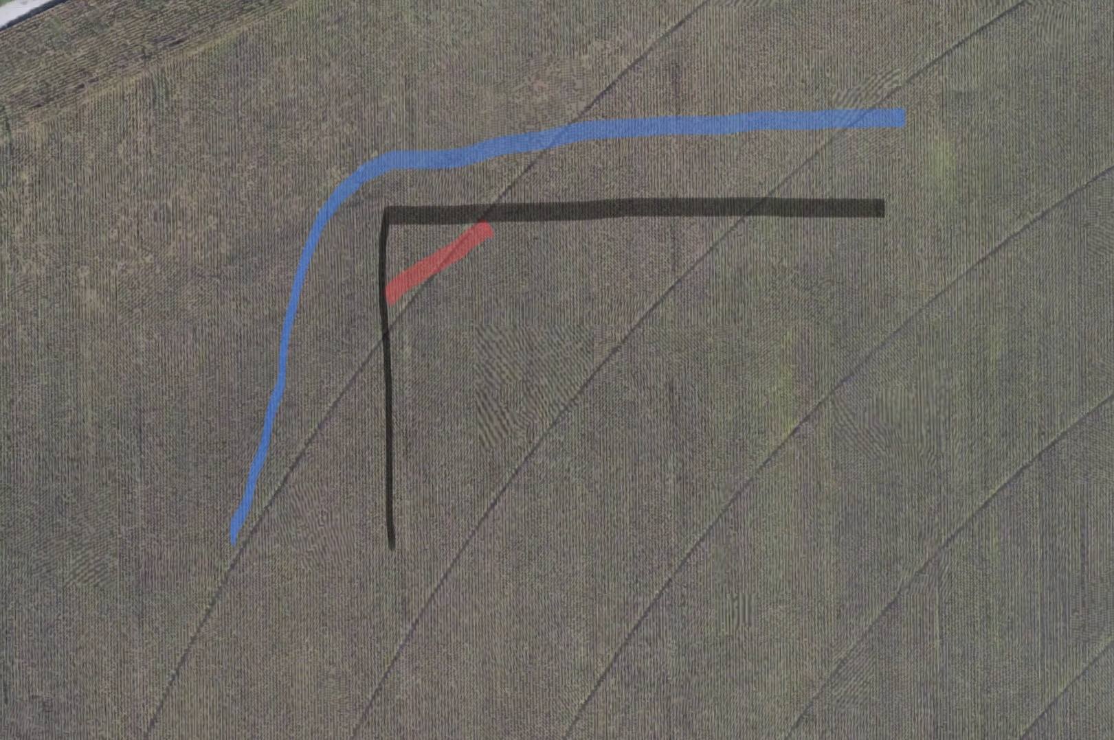 Problem to solve: I need to figure out how much area to build out from a fence corner that is bound on its sides by ditches. I have finally come to the conclusion that I'll be looking to do a deck and pier approach (vs. trying to build out a berm [one ditch belongs to the county, in which case I have to watch how elaborate I look to get): I don't think that I could trust a berm setup to last. The point of constructing such a path is to allow me to get, at least, my lawn mower around the fence corner, if not also my B7800.