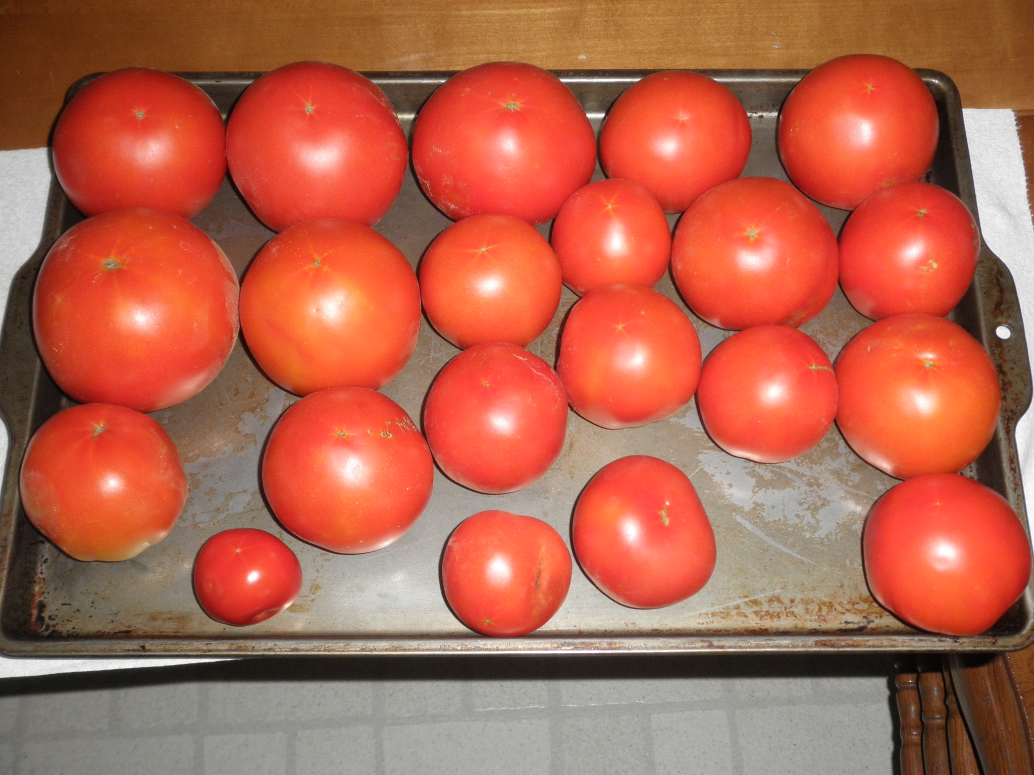 1st pix--tomatoes on tray picked yesterday.