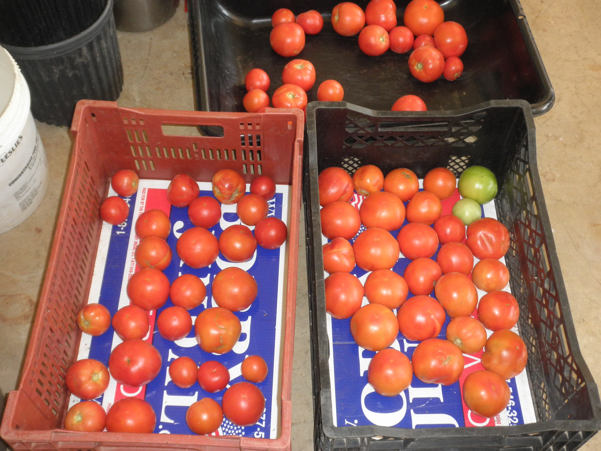 2nd pix--three containers of tomatoes picked today separated by variety.