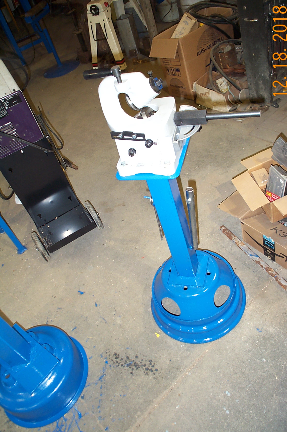 a few of the other things I have been workin on, remodeled the stand for the bead roller, as I am making a fence for it and the stand was in the way, a rolling shear, made the stand for it, used a lod 16.5 rim, a vice stand, this is my welding vice, if I need to I can make tabs to bolt it to the floor, but don't know where I think it would be best location, the welding table out a plate of 1" by 24" steel,