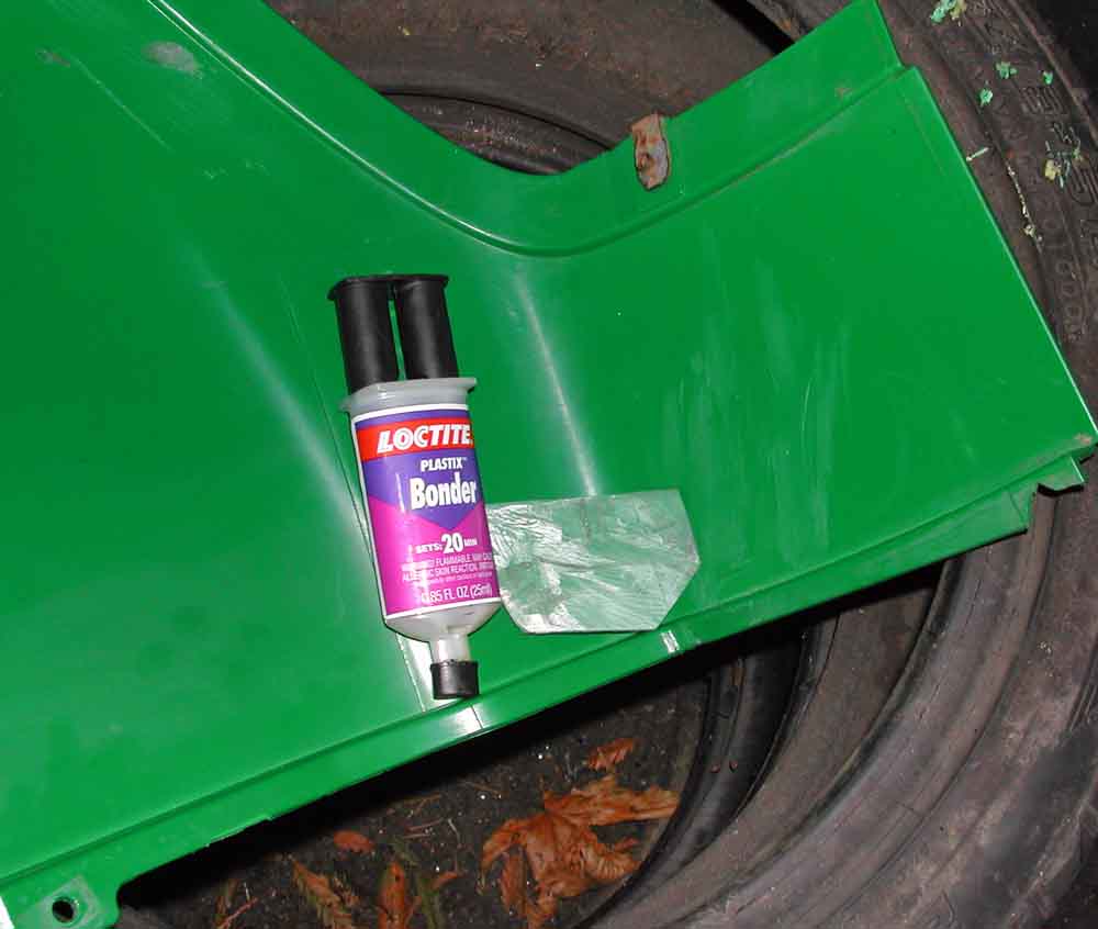 HF has plastic welders for about $40-50 if you have a compressor and about another ten or fifteen bucks for a model that has it's own built in air blower. I haven't fixed any tractor parts yet but have done other plastic repairs. Simple concept and works fine at least for non structural repairs. The only semi tricky part is figuring out what type of plastic you are working with so you can set the correct temperature and select the correct "welding rod" if needed. I have sometimes just trimmed a piece of the same plastic part off to use as my welding rod. Not sure how to tell if you have gotten full thickness "welding" but I haven't had any repairs break yet.