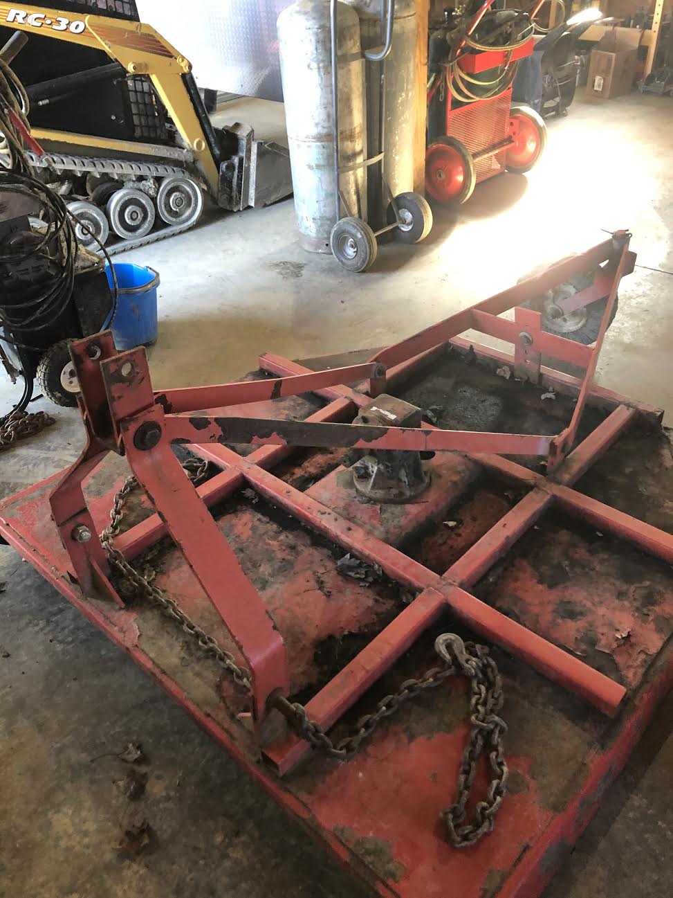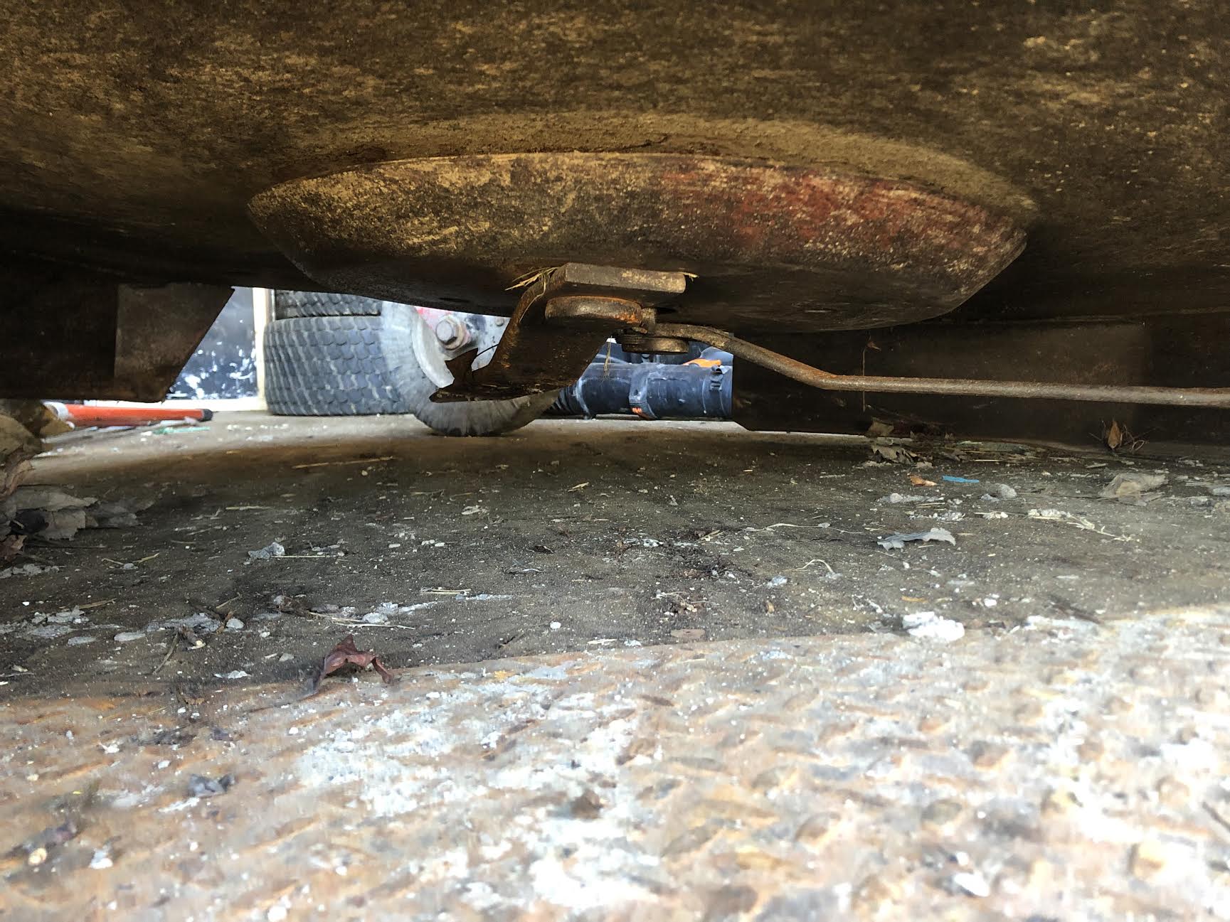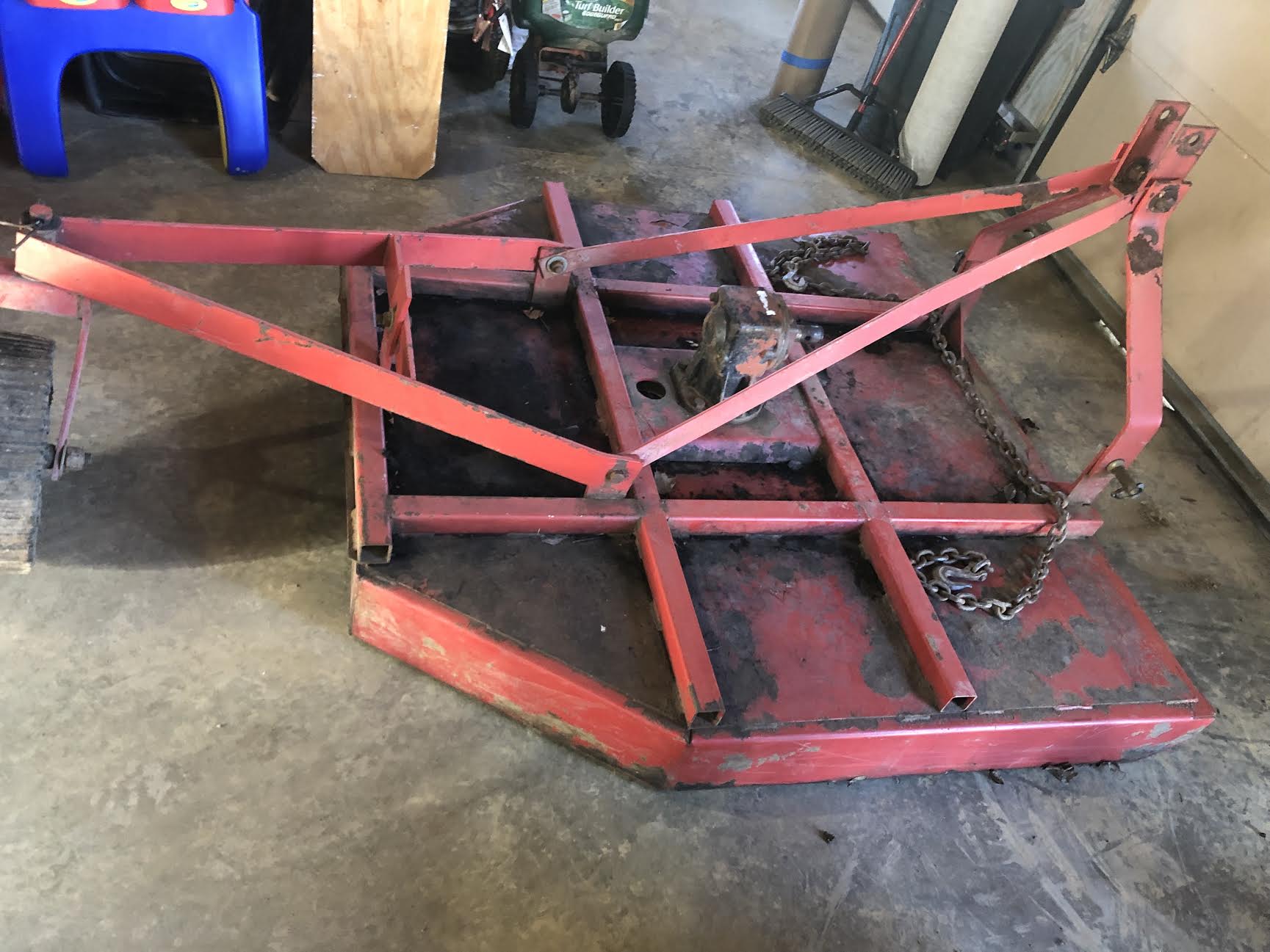 Your pictures appear to show the stump jumper and blades are in decent shape. Removing those blades would be a very tough job, but you can sharpen the blades without removing them by supporting the deck in vertical position and clamping the blades in a position to sharpen with a grinder. The primary concern is the gearbox condition. The bottom seal is likely shot and replacement is another tough job. I am running mine with a bad bottom seal using corn grease (from Tractor Supply) and filling the gearbox regularly. It is keeping the gearbox lubed but eventual seal replacement is only fix. Fortunately, these older rotary mowers have enough steel in them to do some decent repair work. The newer ones are like sheet metal.