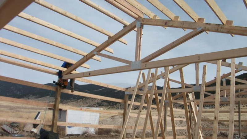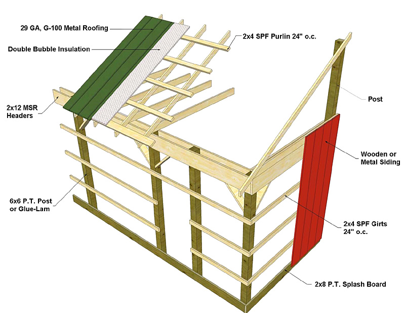 You may be right on the percentages, won't dispute that. But the only ones I can think of where they've used 8' spaced trusses here in Michigan are very large buildings (160'-200' long) where the trusses span 60-80 ft and are therefore pricey. I'm going to check one tonite but I think they rest on the headers there. I've also attached a picture that is typical of pole barn designs I've seen. I'm building a barn addition right now with the rafters sitting on headers, per code.