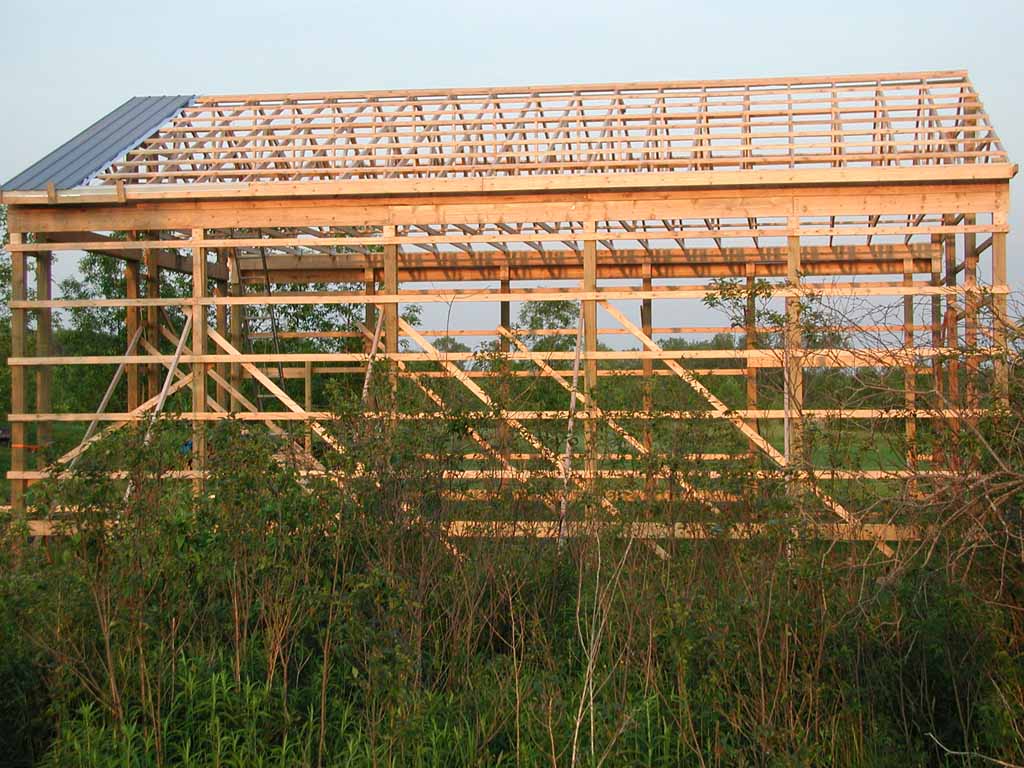 A couple of suggestions (by the way -- looks like fun to me). I have a 30x40x12 (to the bottom of the trusses) pole barn. Similar construction.