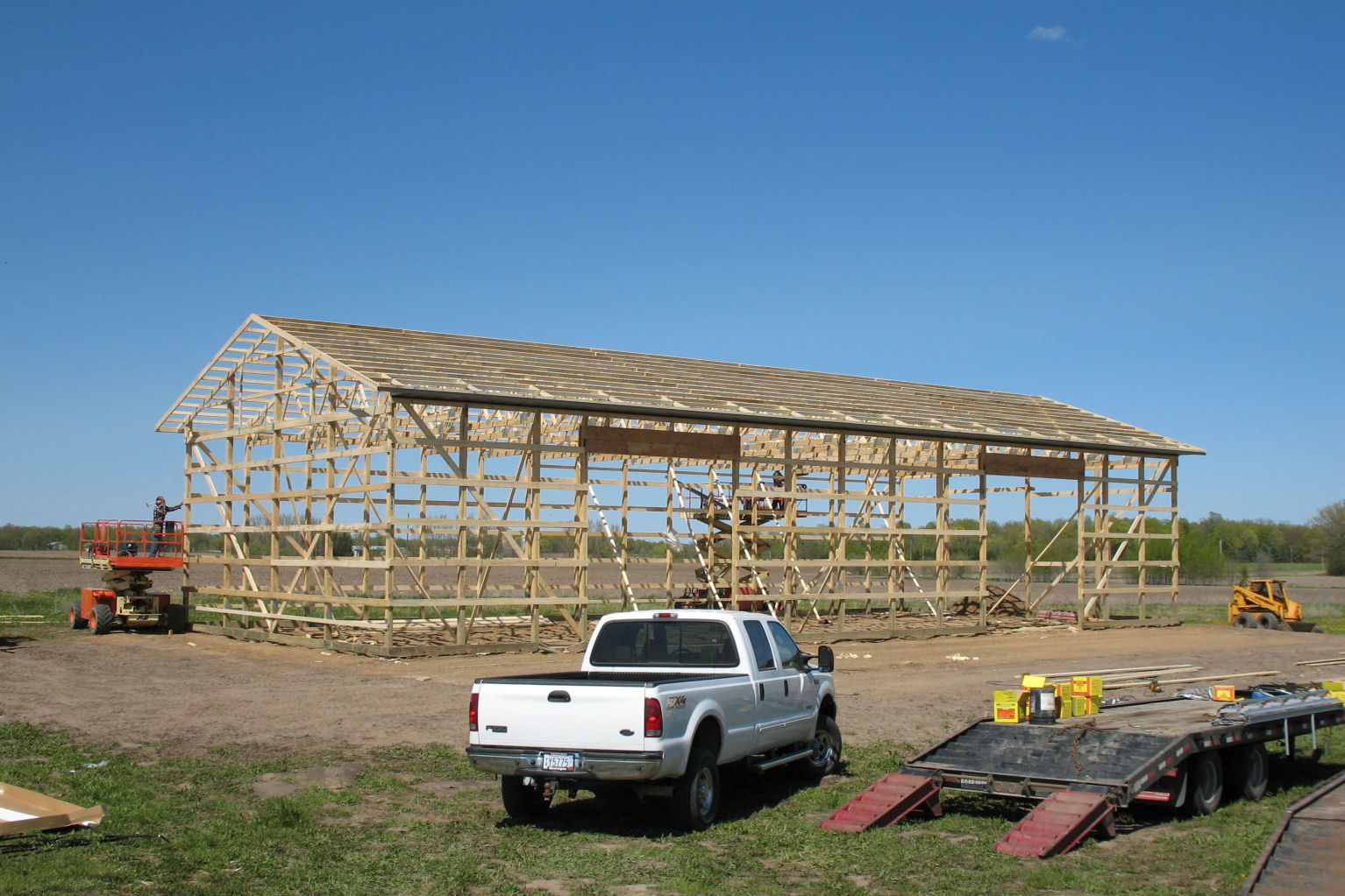 Recently I have started a project that I have been working and saving for a number of years. I must admit it is great to see this come together but it is getting rediculous how much steel and general building materials are costing these days. My new shed will be 40X90X16. My shop part will be 40X42 with all walls insulated and finished in steel. The other half 40X48 will be cold storage. It will be all cement flooring and the shop part will have in-floor heat. As you can see I have planned for 5th wheel camper or tall equipment with 14' overhead doors.