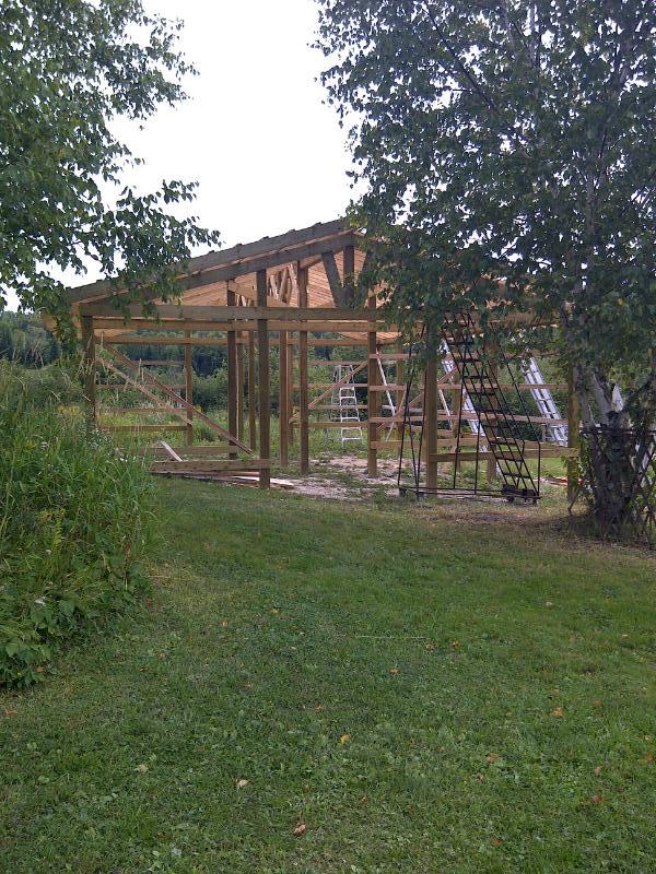 All being well, my roofing metal will be here this weekend from the Amish guy downthe road. Be nice to get the roof closed in.