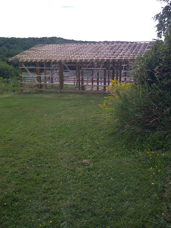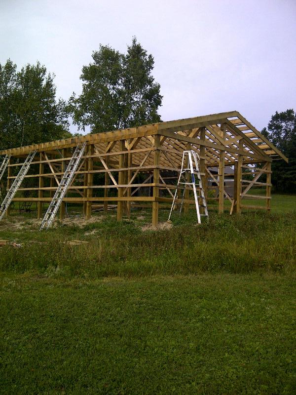 Almost finished the Framing on the pole shed, my 13 yr old son and I are building this, our first big construction project.