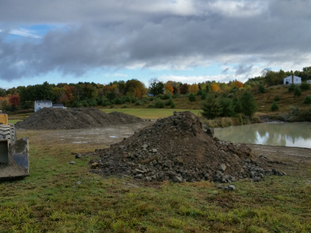 The dirt is spread, hay seed in and the water level is coming up. I lost about 1' of water from the dig.