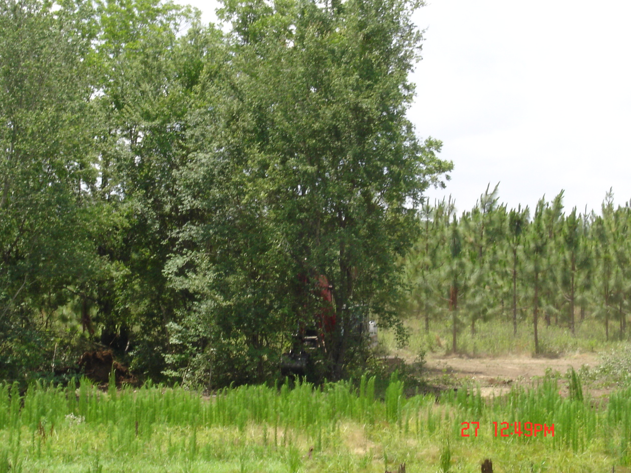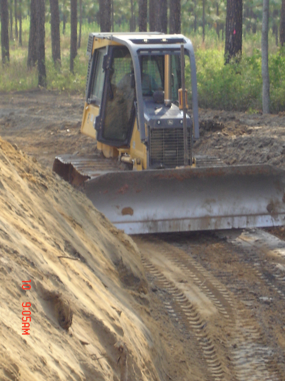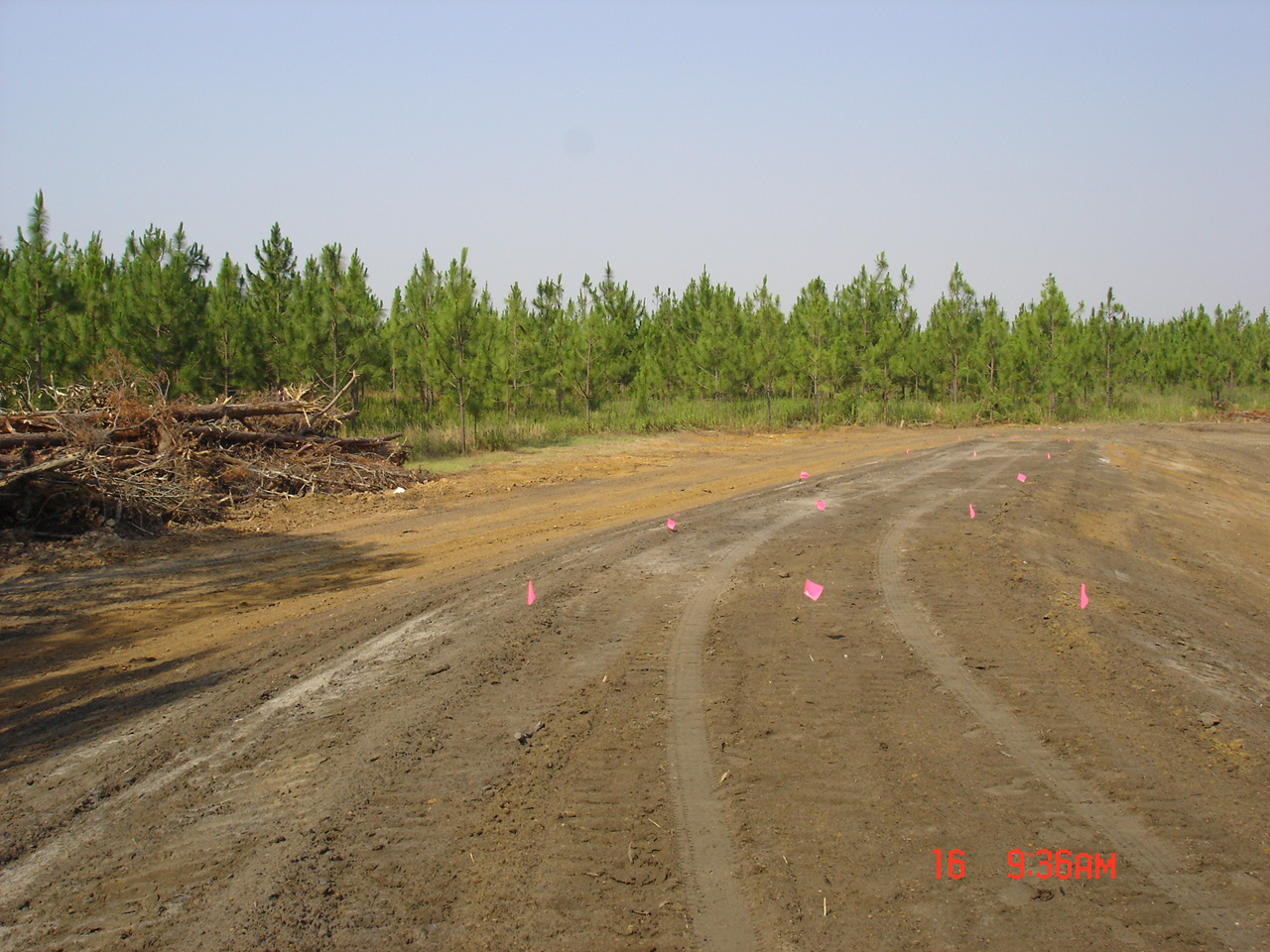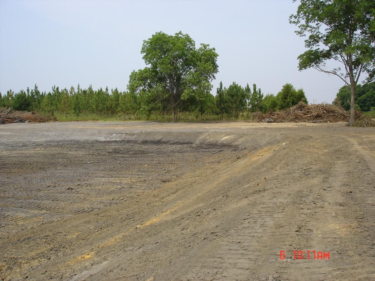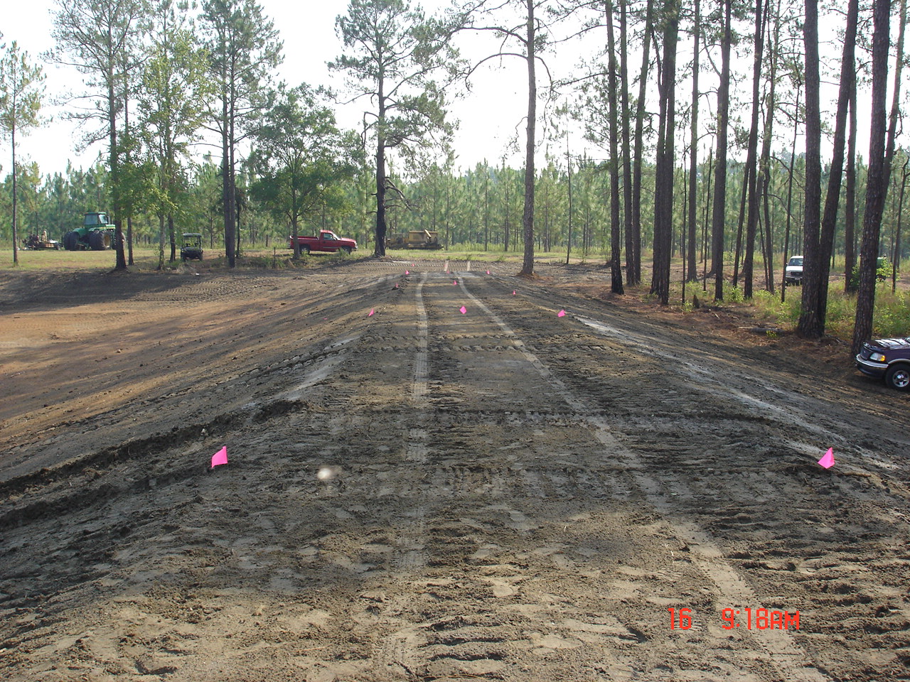 So Friday morning I was at home doing my thing when Stan called. He asked me to come right over since he had the north end and part of the west side cleared. He also had the water line staked on the east, north, and part of the west sides. DW volunteered to go to keep me company.