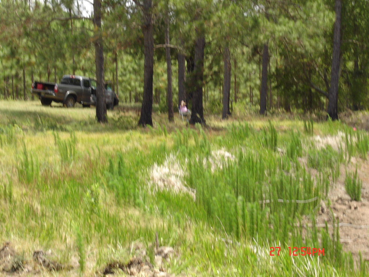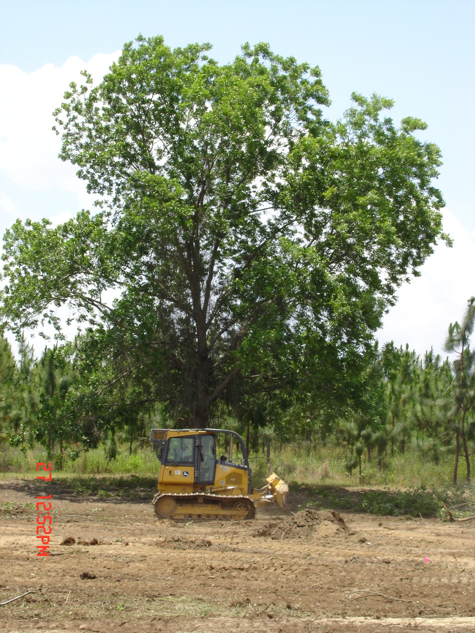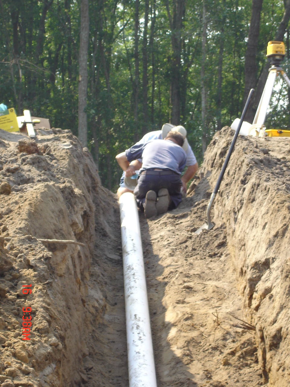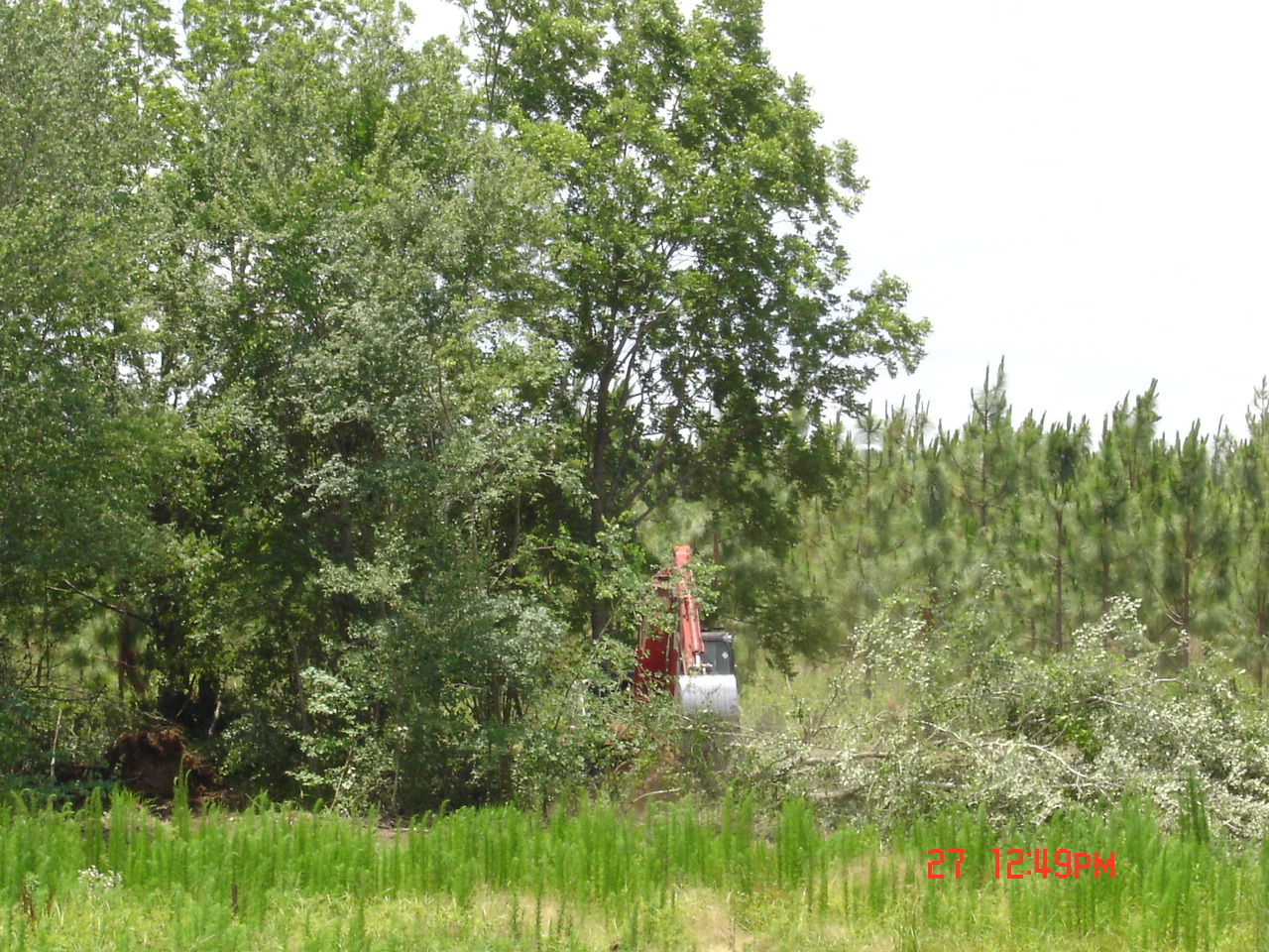 So Friday morning I was at home doing my thing when Stan called. He asked me to come right over since he had the north end and part of the west side cleared. He also had the water line staked on the east, north, and part of the west sides. DW volunteered to go to keep me company.