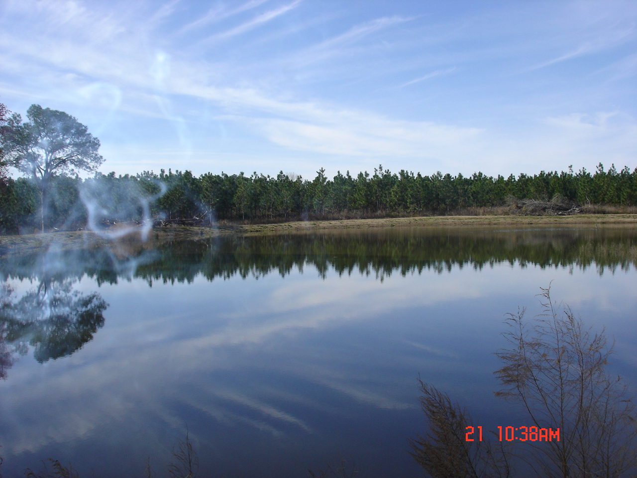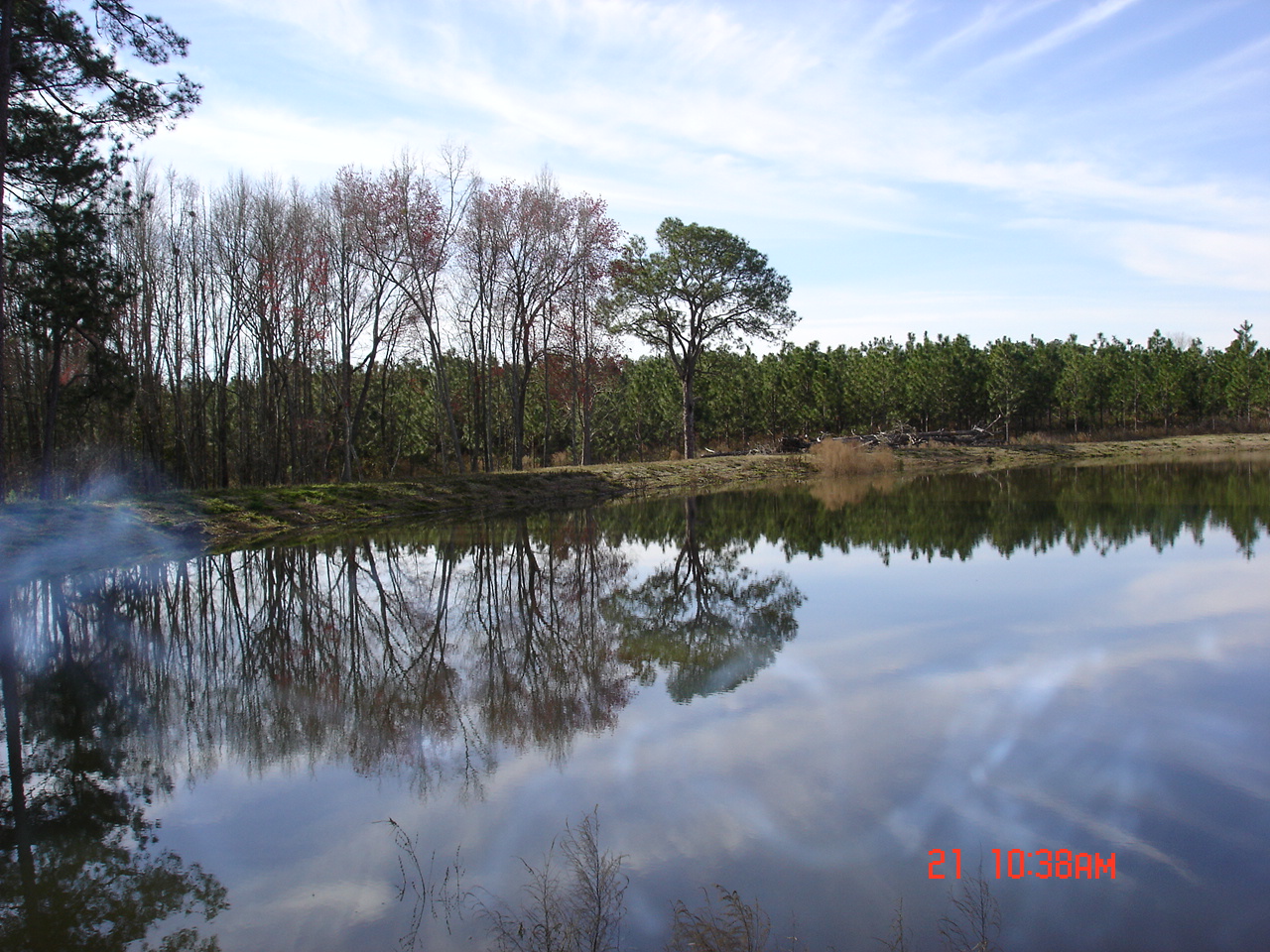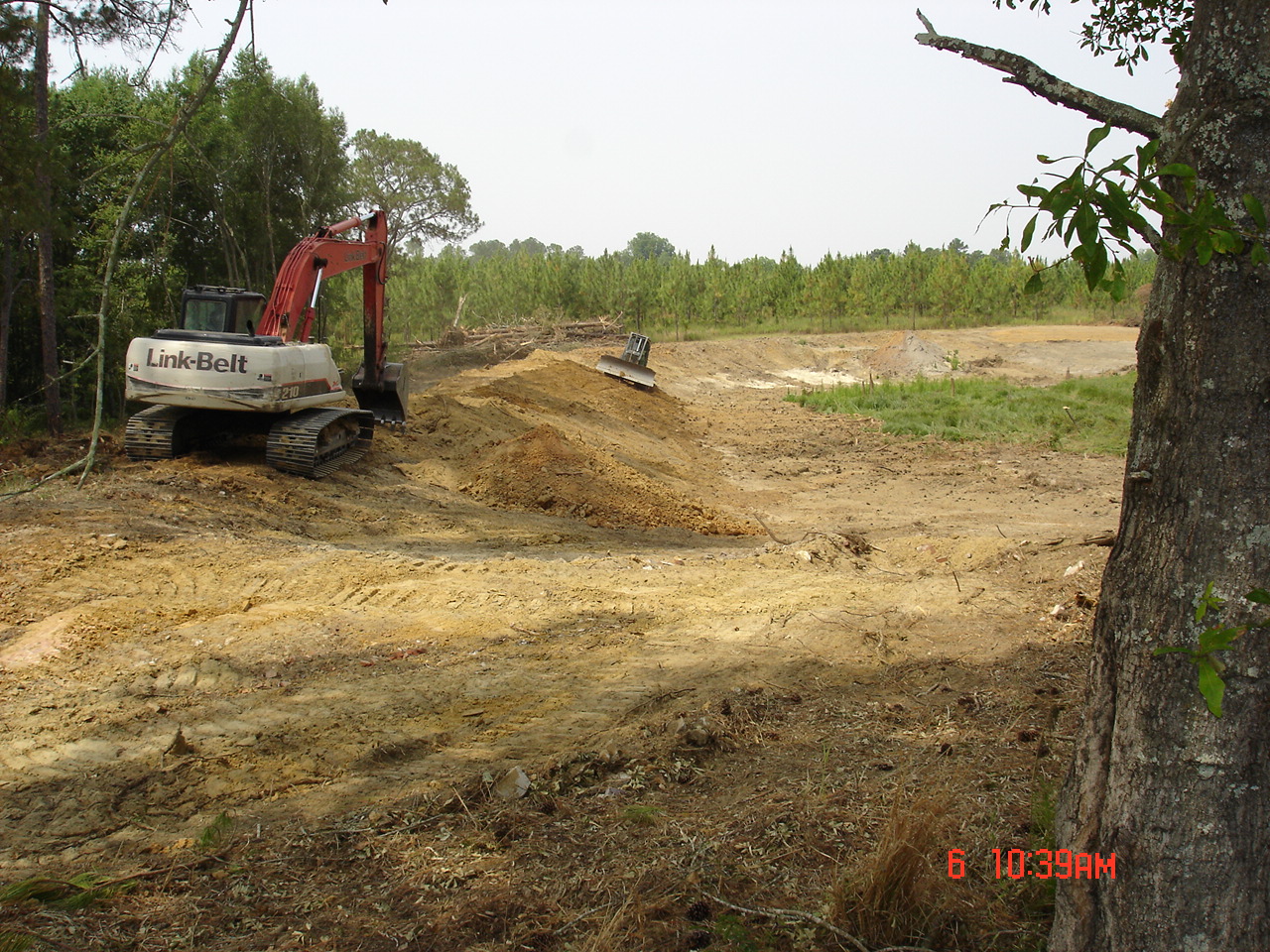 The third picture was taken from the dam looking northeast. It also shows the island. Some of the old longleaf pine stumps still have the notches in them from when the turpentine was harvested. The north end was very shallow, swampy, etc. Stan couldn't give us a firm quote until he "uncovered" the north end to see what had to be done.